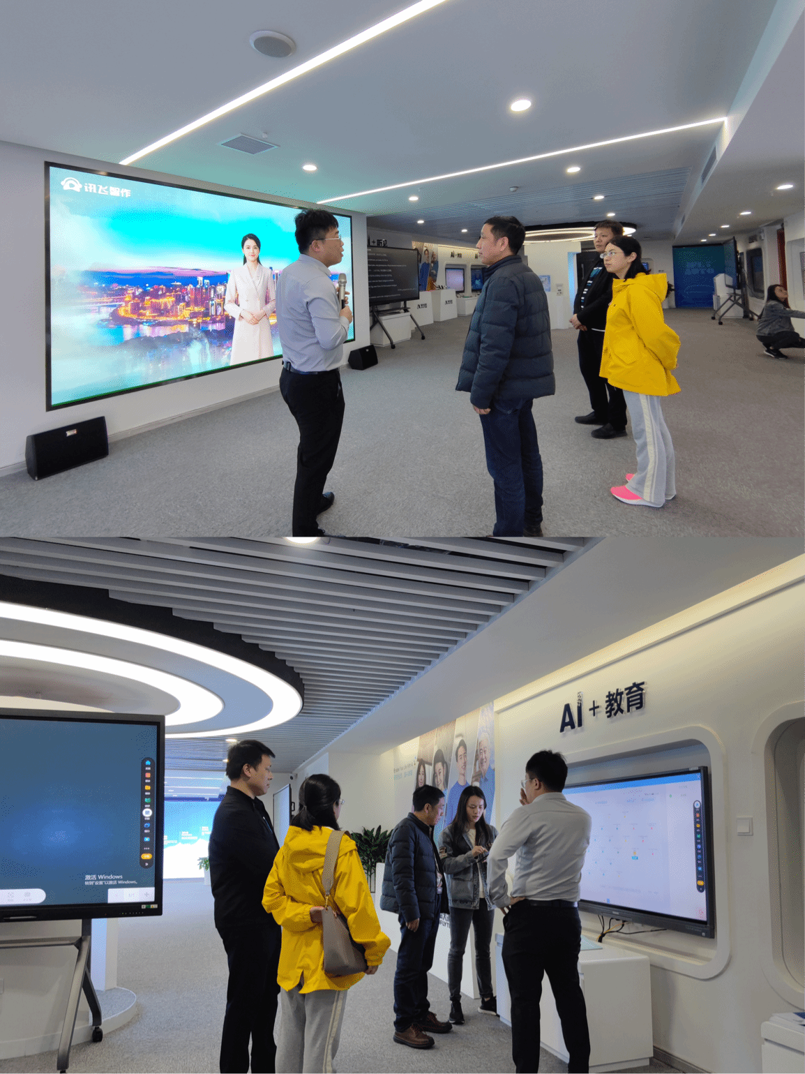 参观完后,校企双方前往会议室进行进一步交流探讨。公司为大家介绍了在重庆教育领域的合作项目和情况概括,面对的重庆高校业务主要客户。吴院长对科大讯飞的科技成果称赞不已,并提出未来我院将开设翻译专业,希望在今后的学习中能运用到科大讯飞的自然语音处理技术,并为科大讯飞介绍了我院学子能力特点,表达了未来合作的殷切期望。