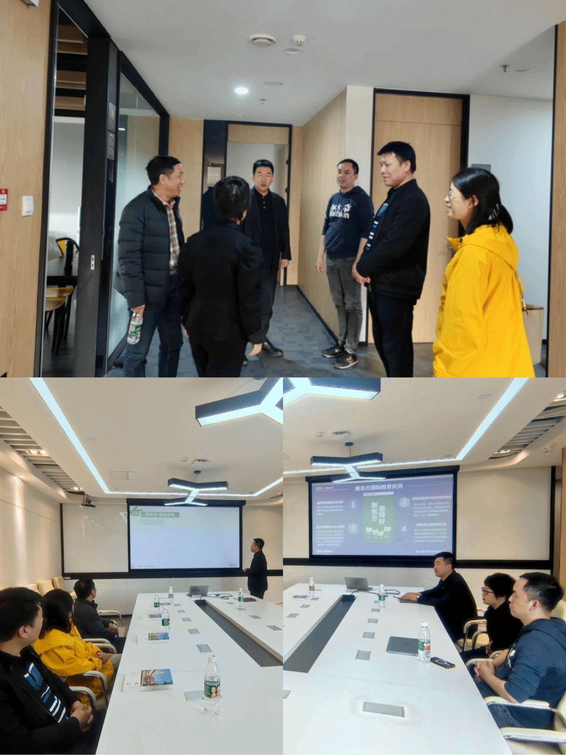 公司负责人向到访老师们介绍新东方教育集团,从事业分布、教育服务、企业文化等发展情况进行了简要介绍。同时,了解到新东方目前有2000多名教职员工,还介绍了员工发展路径及员工生活等方面。吴世银院长也向新东方介绍了外国语学院的专业概况,学生情况等。双方表达了合作期望,希望从实习、就业等方面促进校企合作。用好校园招聘主渠道,促进校企双方的供需对接,精准输送岗位信息,为毕业生求职提供便利。