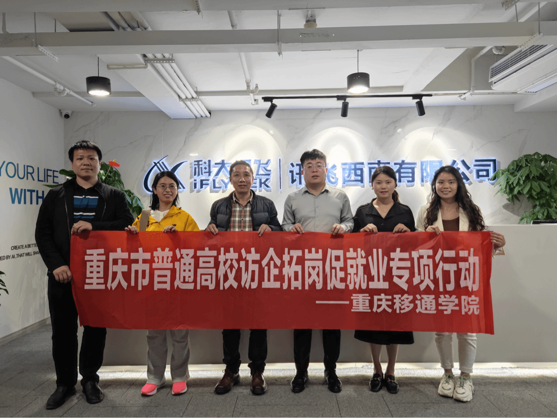 为深入贯彻国家及学校党委关于高校毕业生就业工作的决策部署,加快落实“访企托岗”专项行动,深化访企拓岗促就业工作内涵,促进学生充分就业,高质量就业。2023年4月26日下午,由重庆移通学院外国语学院院长吴世银、副院长罗琳组织带队,外国语学院专业学科教师张旭宁老师、曾梦凡老师共同参加的访企拓岗促就业专项活动顺利完成。本次活动前往重庆新东方教育科技集团有限公司及重庆科大讯飞股份有限公司。