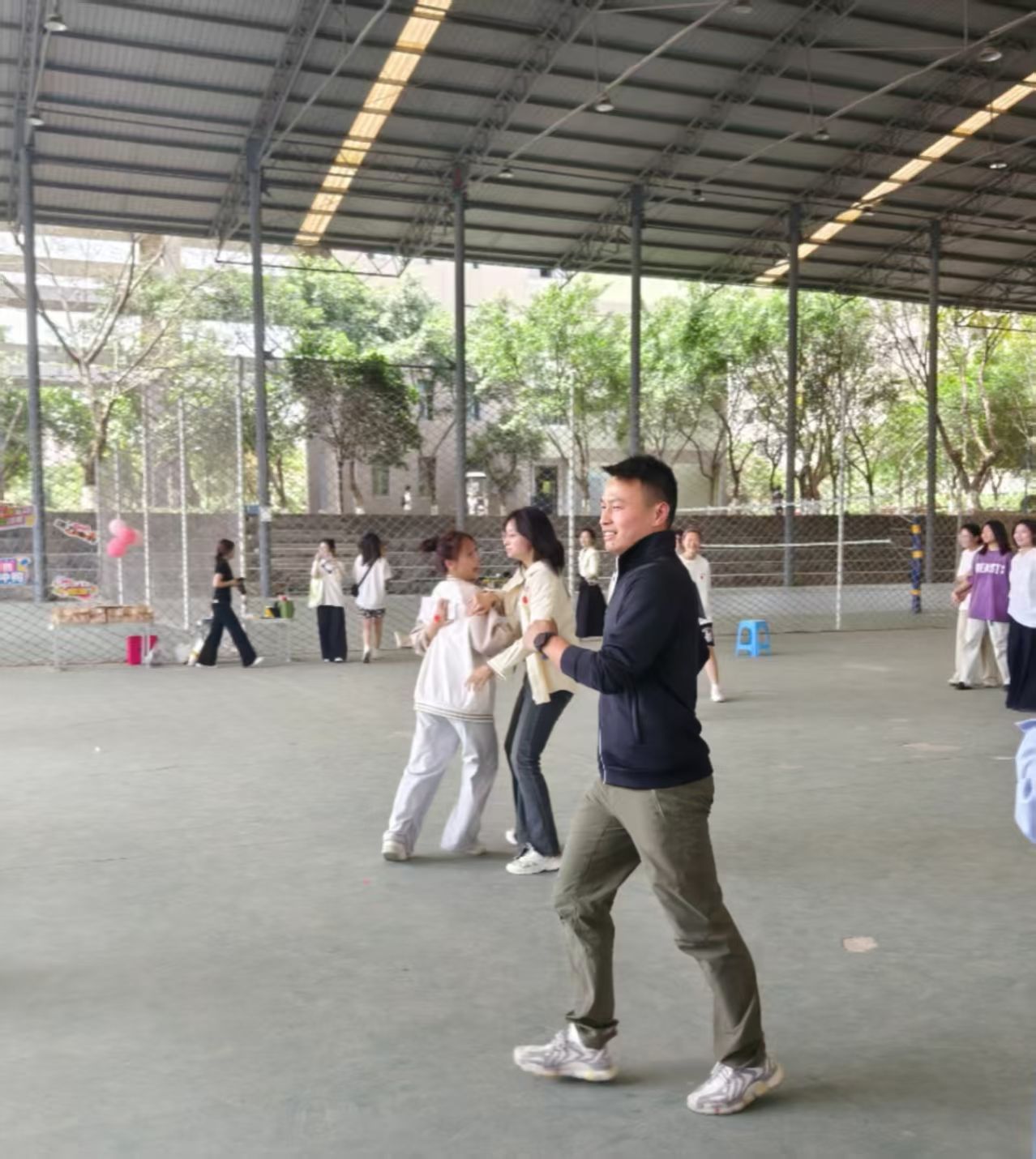 热身环节后,活动进入团队协作游戏阶段。异科导师田老师作为我们的教练带领我们班女生以219一个宿舍共同参加人员有苟芸、冉一维、王云彤、李琪,和218的宋福晴,还有班上的男生:刘佳兴、匡育成、熊浩鑫、陈希卓"撕名牌大战"中,大家展开激烈角逐,既有"闪电突袭"的战术配合,也有"结盟智取"的策略博弈;"极速绕圈"环节,参赛者需双手搭肩,用最快速度一个接一个s绕圈前进挑战;压轴的"小鸡进化论"游戏将气氛推向高潮,师生通过"鸡蛋-小鸡-凤凰"的趣味变身规则展开追:游戏生动有趣,活动现场还准备了礼物给获奖队伍进行奖励