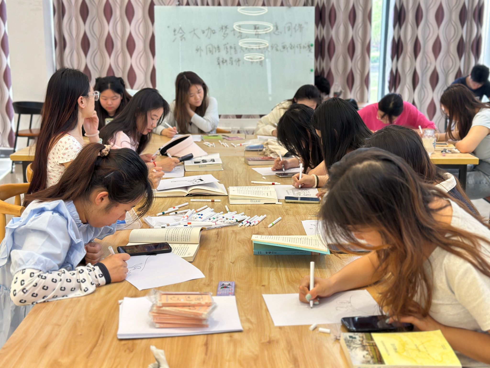 为持续深入推进同学们对大咖阅读兴趣,了解大咖们的人生经历,培养爱阅读、爱思考的习惯,陶冶同学们的艺术情操。2025年4月16日下午14:30,罗倩异科导师小组成员于天渠书院110 展开了一场以大咖的文学作品为蓝本的绘画创作活动,同学通过绘画来展现自己对作品的理解与想象,将文字转化为视觉艺术,让两种艺术形式碰撞出了耀眼的火花。