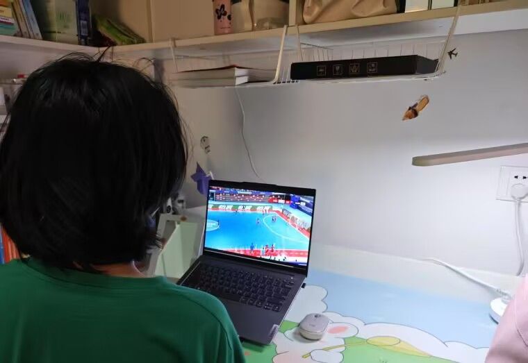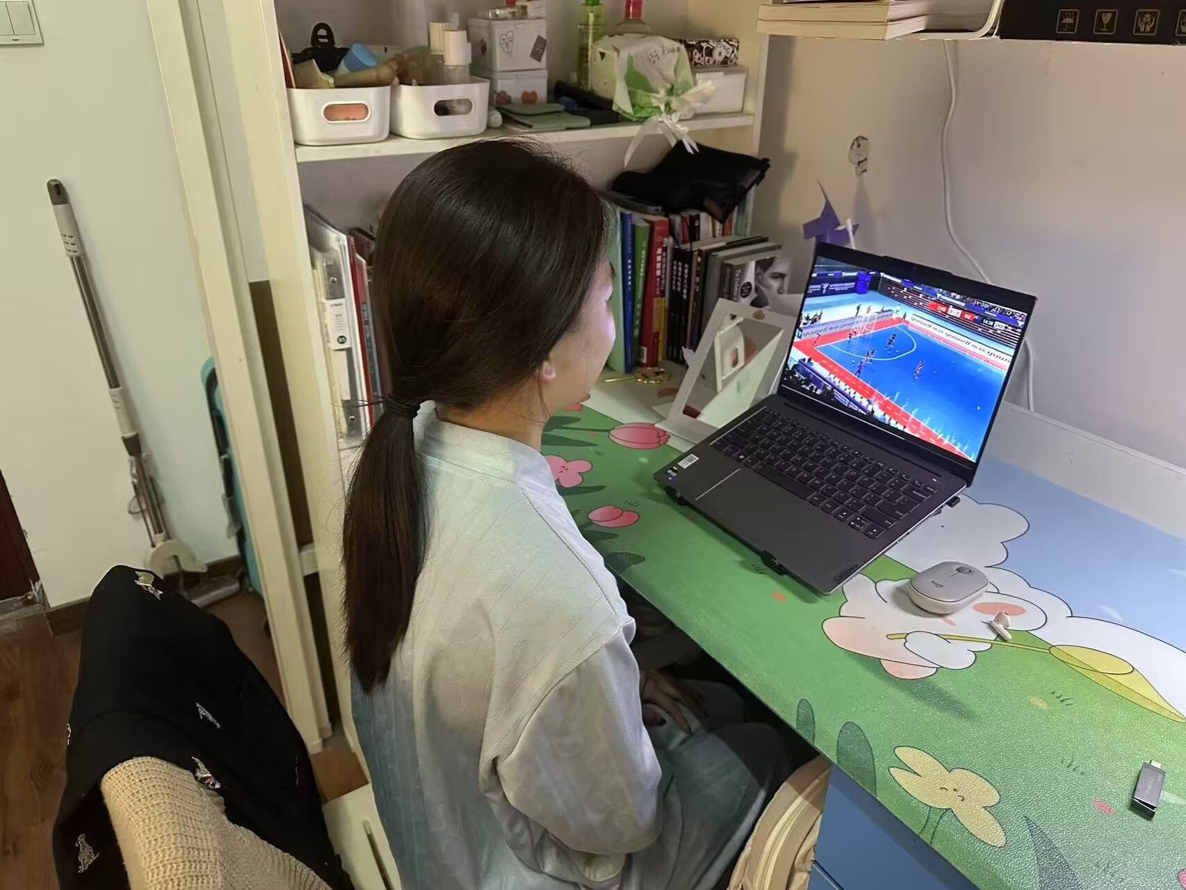比赛当天,各寝室早早做好准备,同学们满怀期待地围坐在屏幕前,眼神中闪烁着兴奋与激动。小小的寝室充满了浓浓的观赛氛围。随着比赛开始,现场气氛瞬间被点燃,同学们的欢呼声、呐喊声此起彼伏,仿佛大家也置身于呼和浩特的比赛现场。