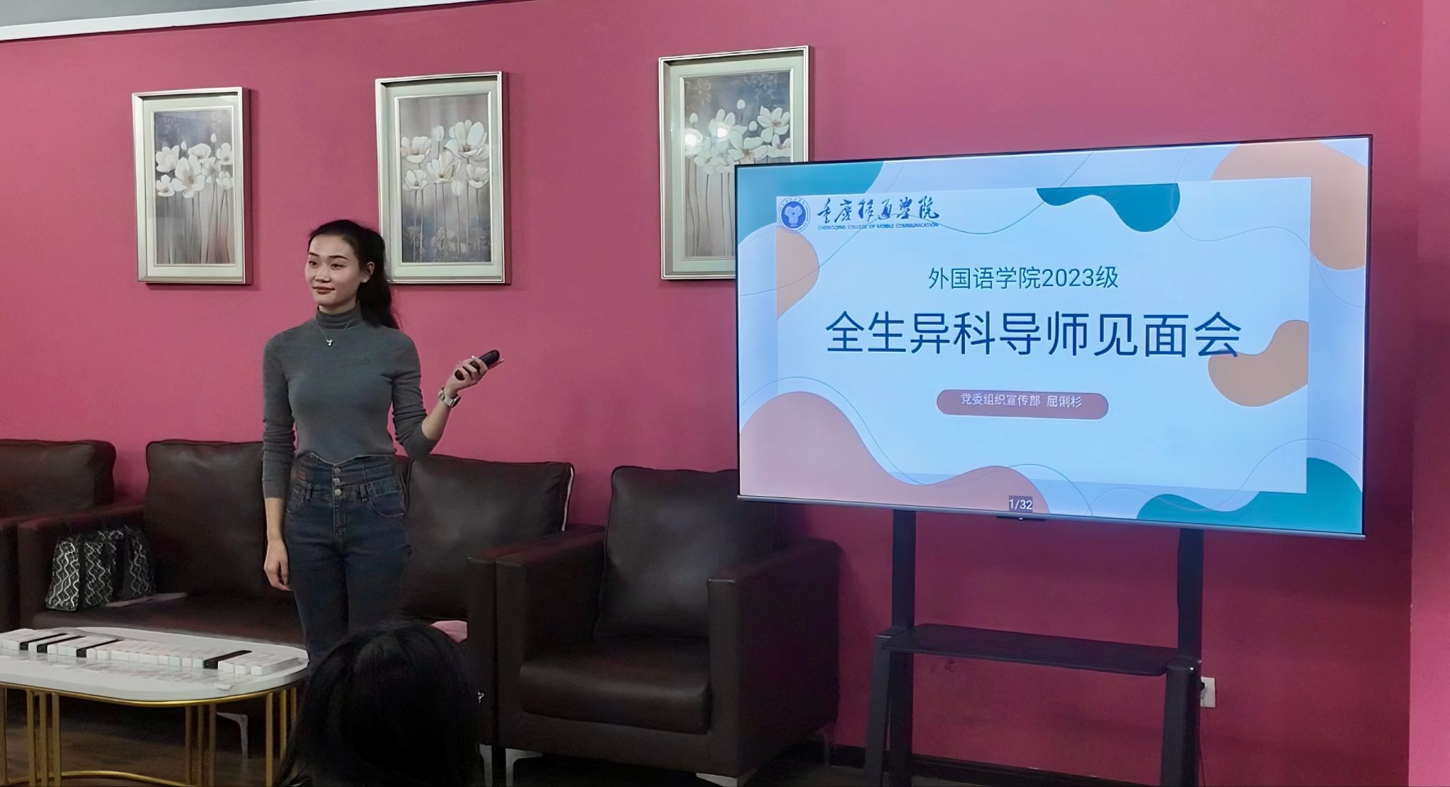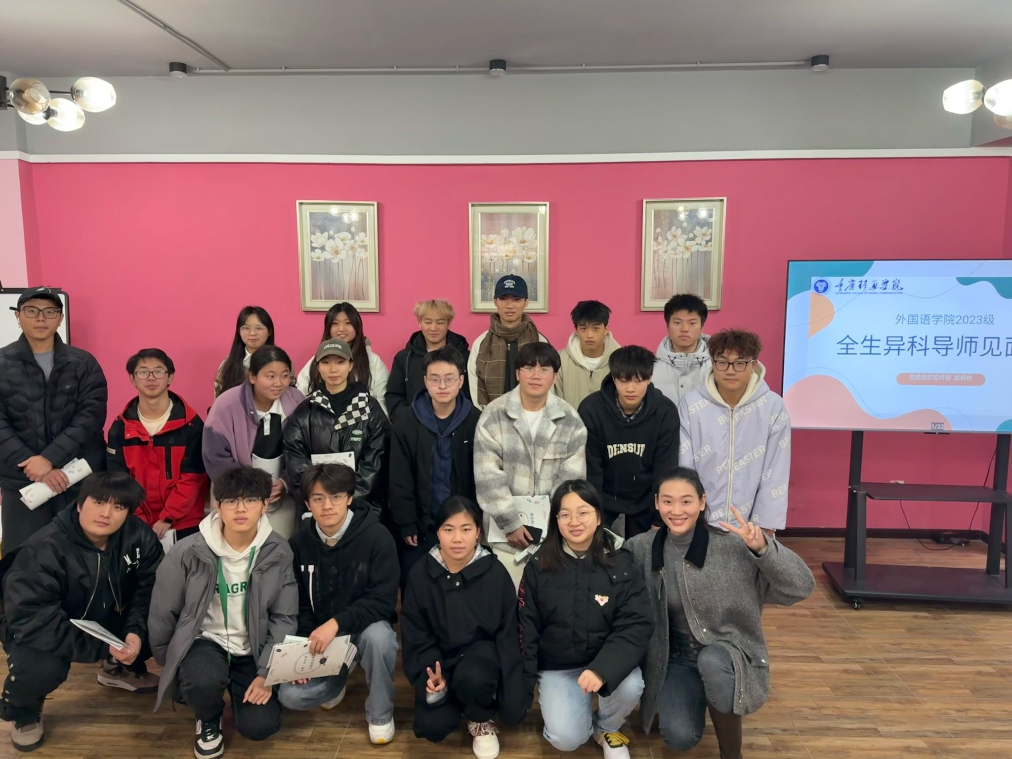 为了更好地开展异科导师活动,为学生提供心理与情感支持、拓宽学生视野与思维、培养学生兴趣爱好、指导学生学业与生活,从而达到为学生人生与职业奠基的目的。屈俐杉老师于11月29日号下午14:00在爱莲书院会议室对德语1班和英语10班的异科学生开展了师生见面会。本次见面会的主题是“真心真情相伴”,设置有导师致辞、导师自我介绍、现场调查问卷填写、彩蛋(特邀嘉宾)、合影留念等五个环节。