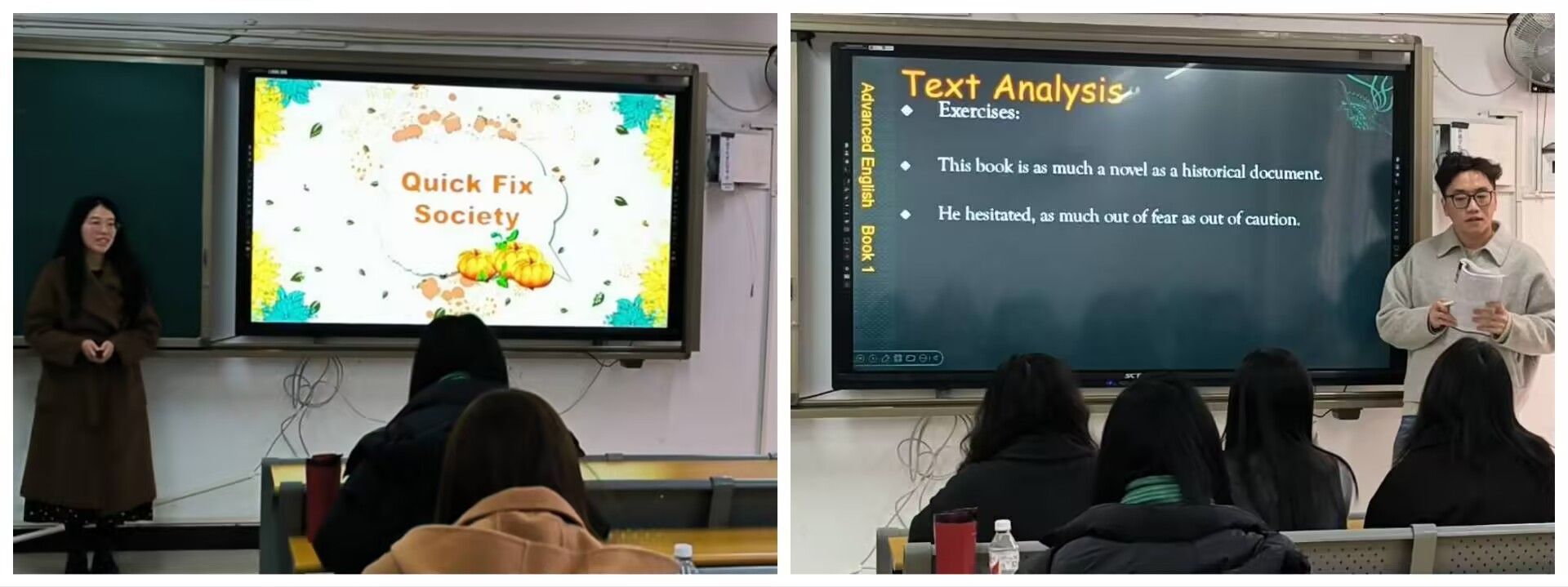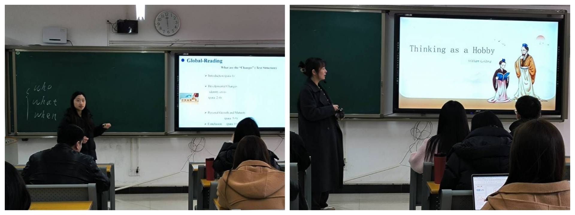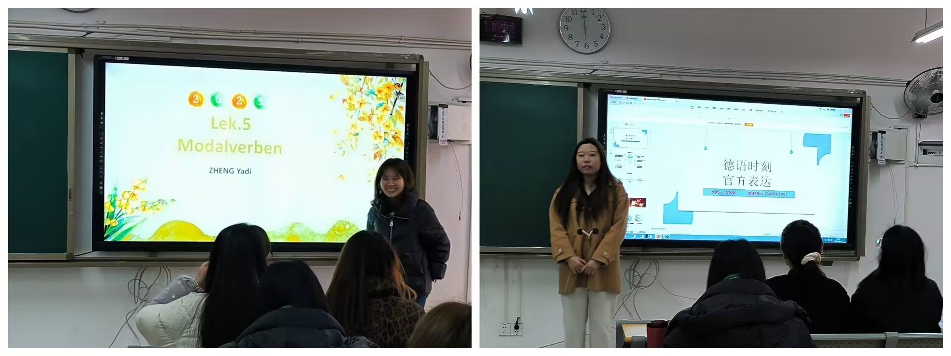 本次参赛教师分来自外国语学院英、德语教研室,共有贺修柳、张娅、郑雅迪、雷凤钰、王萍、杨敏、杨安稷7位老师,参赛内容涉及英、德语专业相关的多门课程。参赛教师们按抽签顺序依次说课、授课,充分运用扎实的基本功,认真讲解教学内容,展现出专业、严谨、创新的教学风采和良好精神风貌。比赛持续两个半小时,现场气氛紧张中不失活泼热烈。