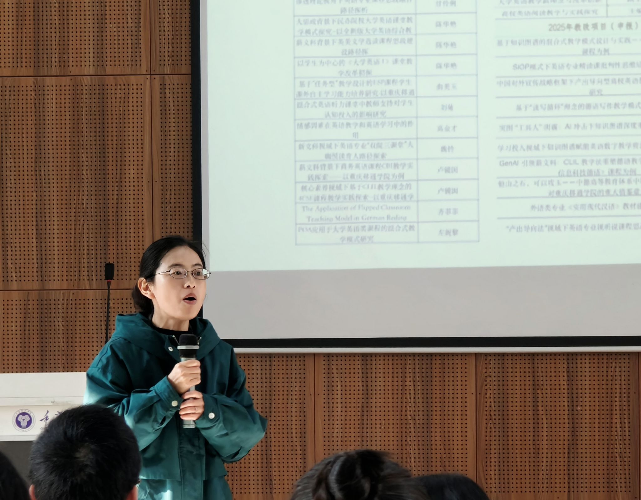 教学分享环节掀起会议高潮。公共外语教研室万垚老师直面AI技术冲击,提出“智能工具辅助分层教学”的突围路径,倡导传统课堂与人工智能协同育人;专门用途英语教研室万江老师以智能工程英语为例,分享跨学科协作设计情景化课堂的实践经验,彰显“专业赋能、应用驱动”的教学智慧;德语专业教研室武桐老师结合参赛经历,剖析“团队共研、破壁创新”的成长密码,激励教师以赛促教锤炼育人本领;英语专业教研室黄艳老师则提倡“走近学生、激活潜能”的互动模式,通过项目式学习与多元评价机制,让课堂成为师生共进的沃土。