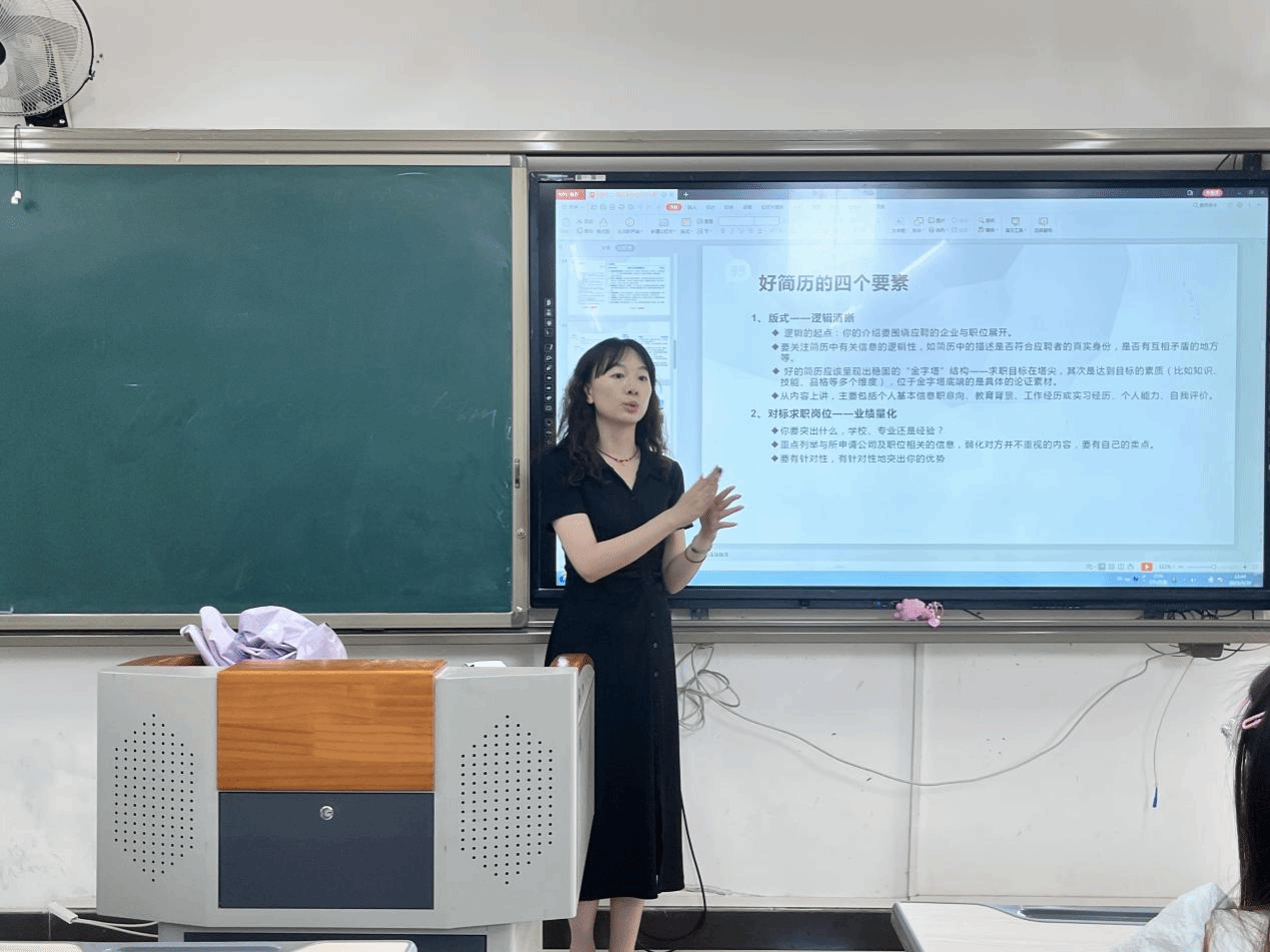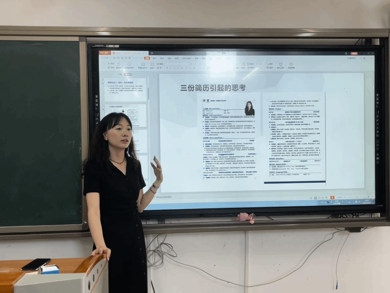 课程伊始,王艺静老师以三份典型简历为切入点,通过展示一组组详实的数据,直观地向学生们阐述了一份优质简历在求职过程中的重要性。她强调:“简历是用人单位了解求职者的第一窗口,其质量的高低直接影响着求职成功率。一份吸睛的简历,能够迅速抓住HR的眼球,让你在众多竞争者中脱颖而出。”