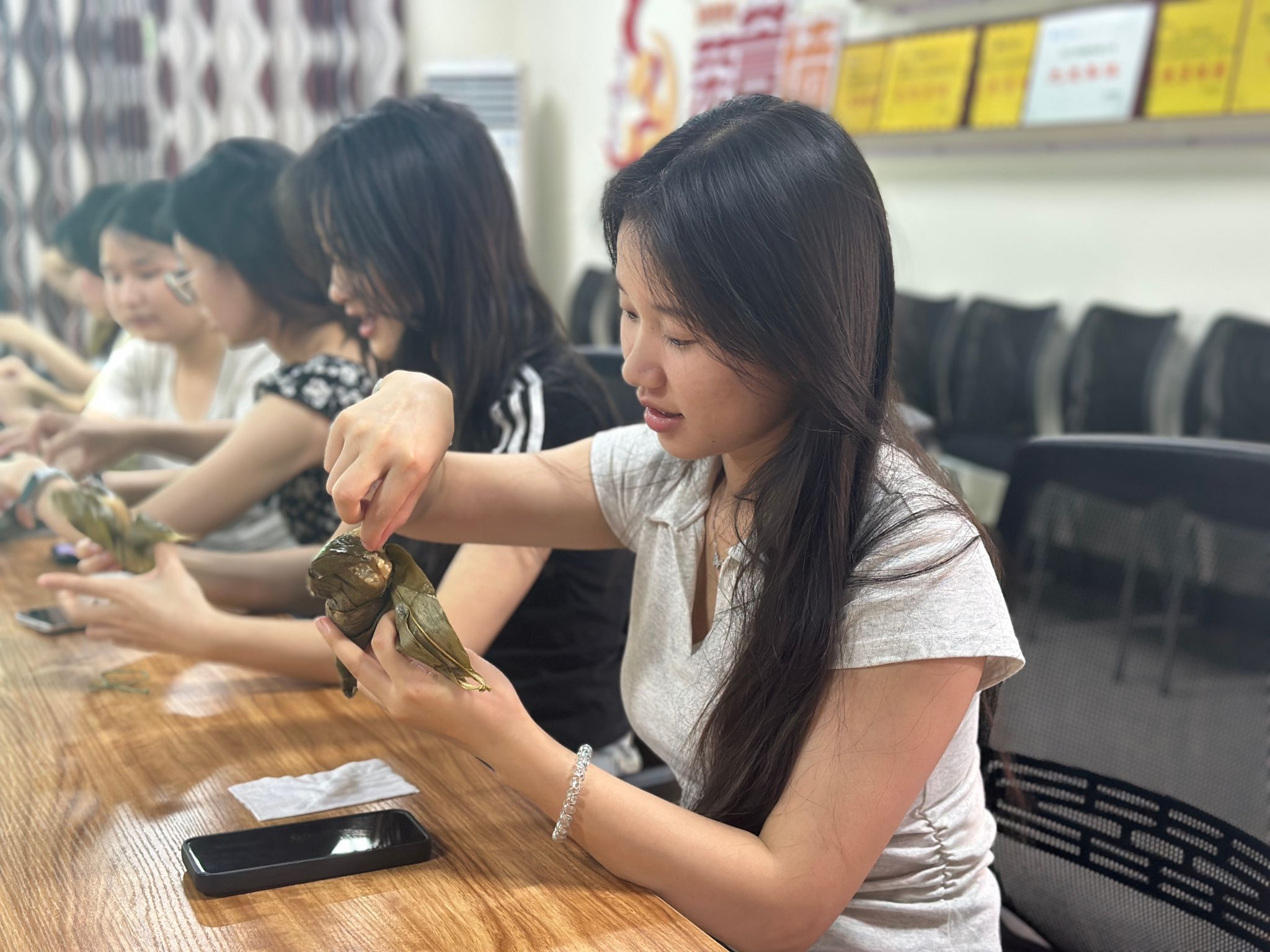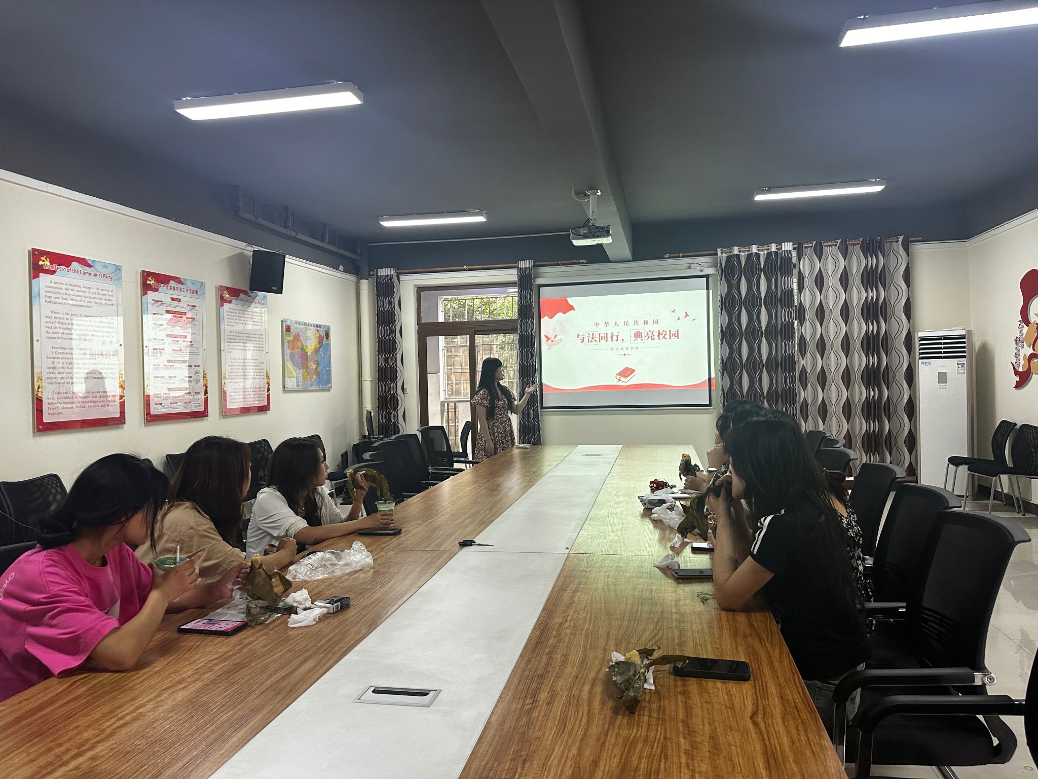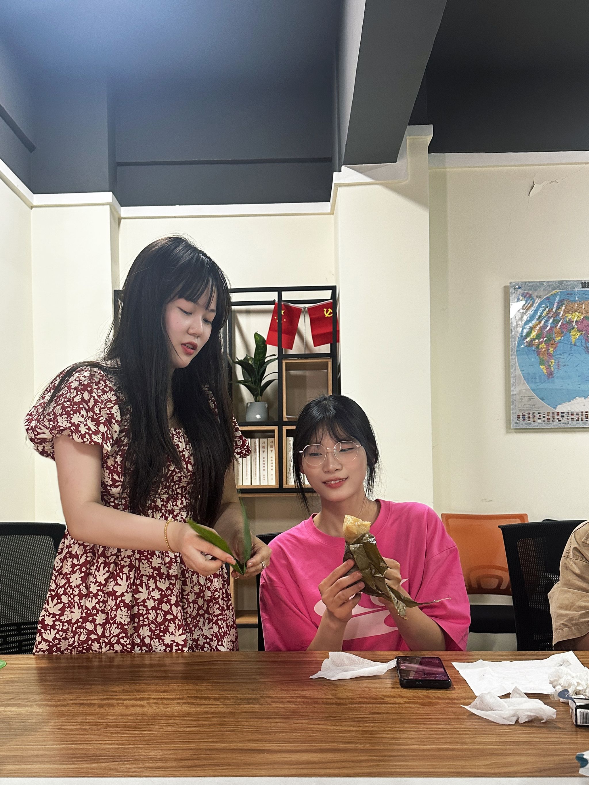 端午临仲夏,时清日复长。为传承中华传统文化,增进同学们对端午节习俗的了解,让同学们在学校也能感受到节日的氛围,同时为提高大家的法律意识,增加对民法典的理解和认识,外国语学院异科导师小组于5月21日下午14:00在荷悦书院112举办了“粽香满校园,民法伴人生”为主题的特色活动。活动现场粽叶翻飞、欢声笑语,同学们在品鉴粽子、听取讲解的过程中,沉浸式感受传统节日的独特魅力,收获了满满的欢乐与温情,同时也在罗老师专业讲解下,增加了民法的知识储备。
