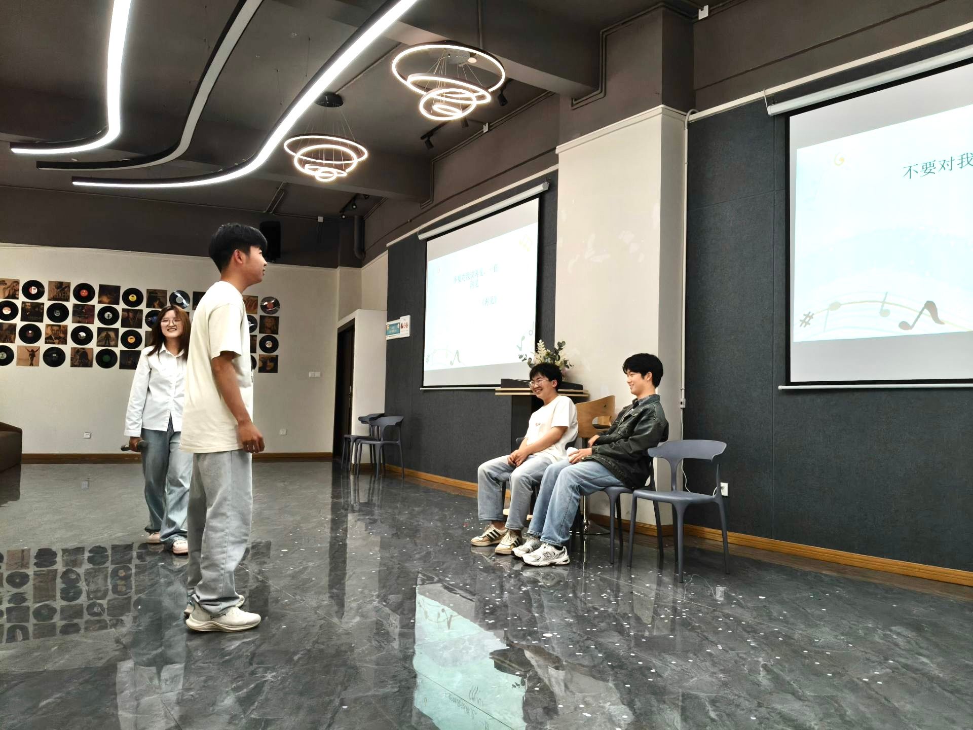 “猜歌名”环节将活动推向第一个高潮。从华语金曲到欧美流行,从经典老歌到抖音热单,现场同学分组PK,参赛同学们争相抢答,展现出惊人的音乐储备与反应力。主持人幽默互动,台下观众时而屏息凝神,时而哄堂大笑,音乐的魅力在这一刻跨越年代与风格,串联起所有人的共鸣。当熟悉的歌曲旋律响起时,全场同学自发跟唱,激昂的歌声将活动氛围推向新高度。