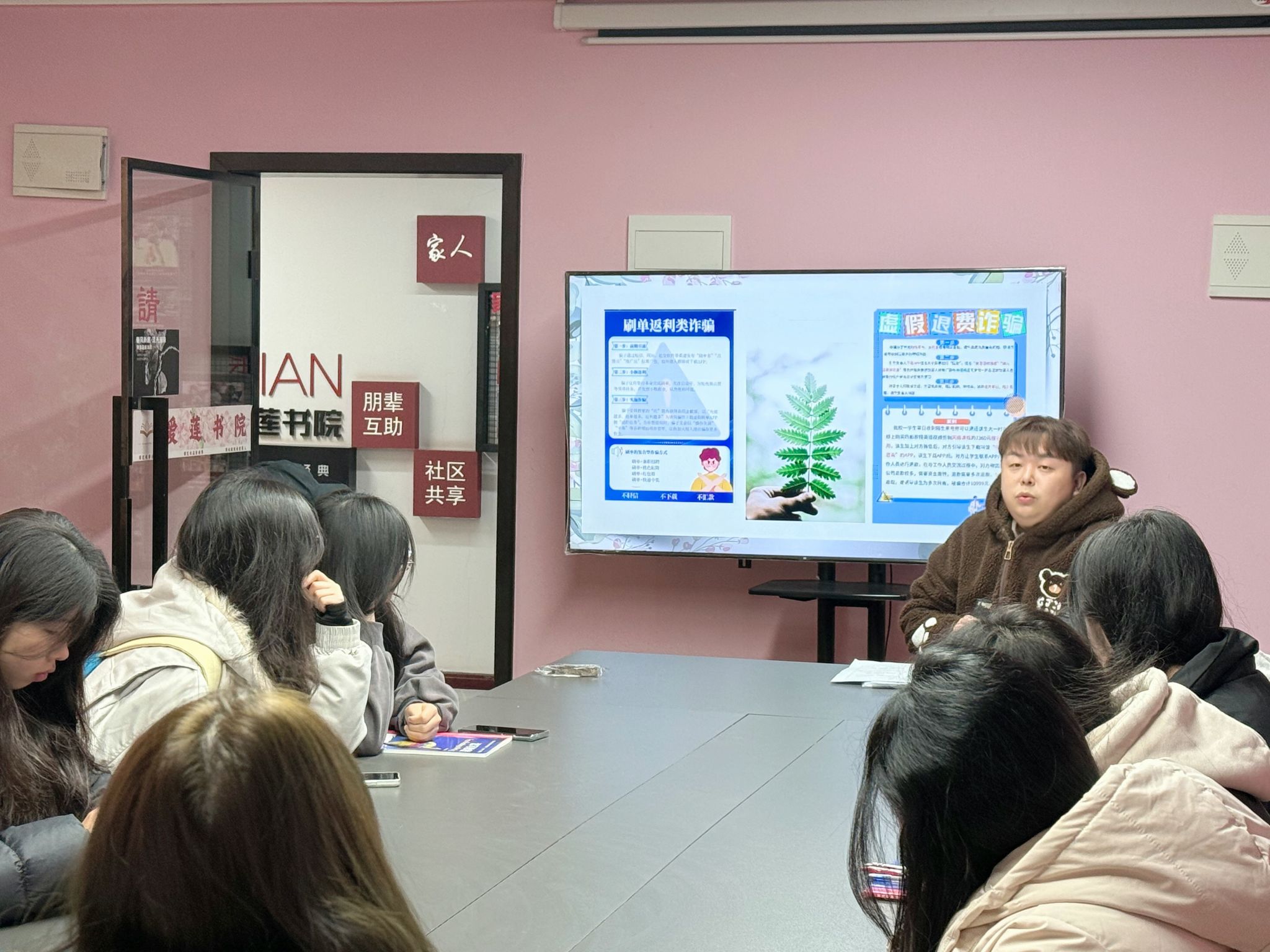 3月18日上午9点,异科导师曾鹏在爱莲书院多功能会议室开展了以“新学期·新篇章”为主题的异科导师见面会。此次见面会从反诈教育、社会实践指导、大咖阅读以及心理健康四个板块开展了交流。