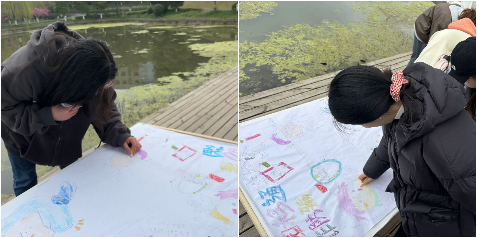 在“法立方圆·共筑和谐”反诈宣传活动中,刘晓西异科导师小组成员前往天渠书院荷塘边,共同参与了一场内容丰富、形式新颖的反诈宣传活动。活动开场的反诈宣传讲解,让同学们清晰地了解到当下最常见的诈骗手段和防范措施,如刷单返利、电话诈骗、网络贷款等,通过真实案例剖析,同学们清晰地认识到诈骗的危害性以及防范的重要性。在涂鸦互动区,刘老师和同学们参与了以“哪吒”为主题进行涂鸦创作,寓意“斩妖除魔”,与诈骗行为作斗争。