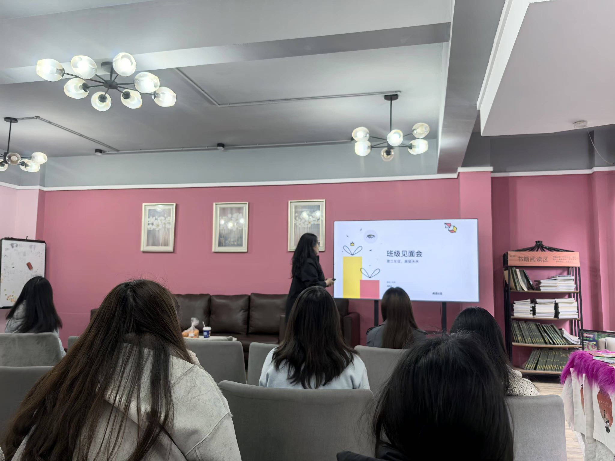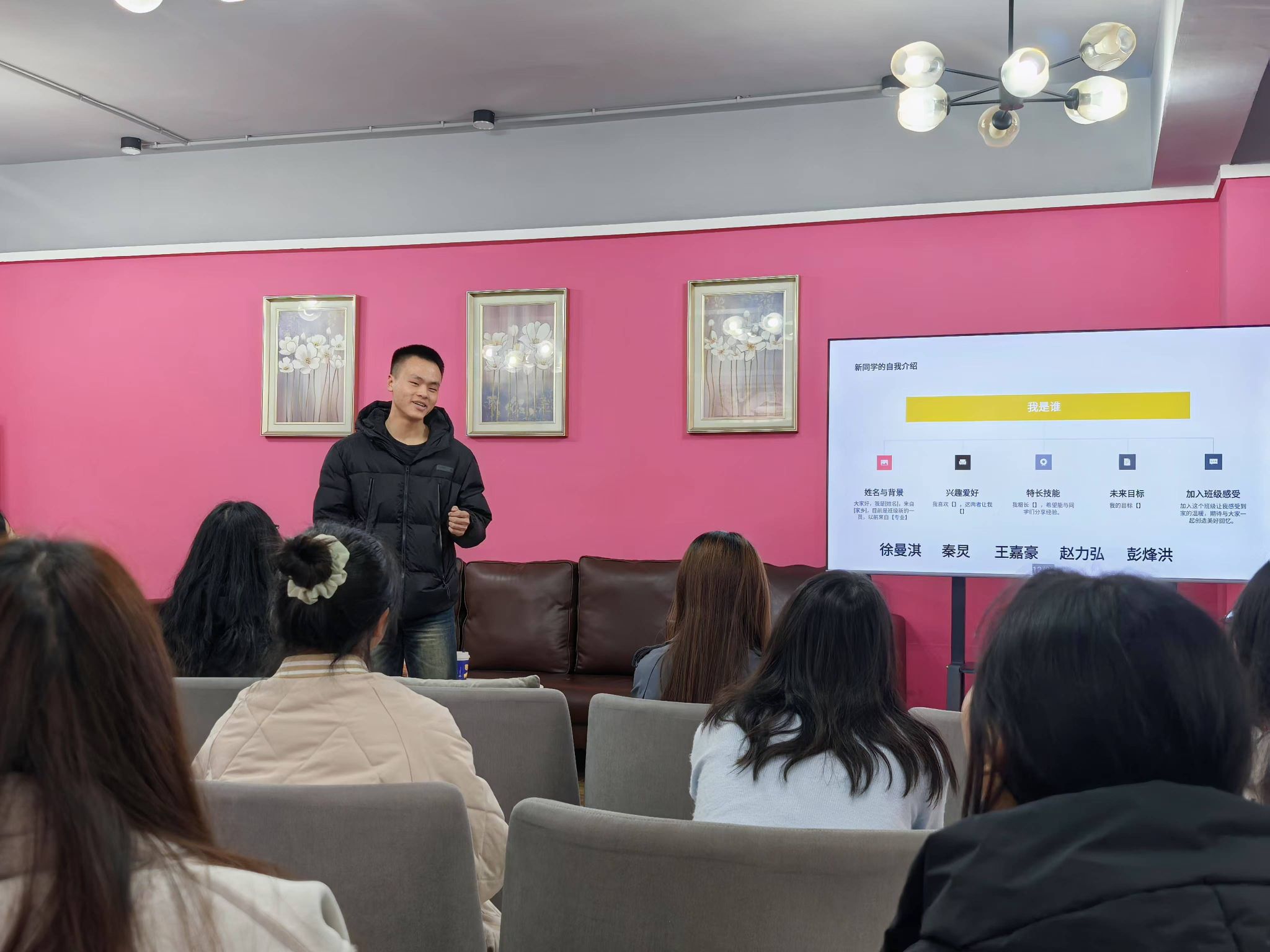 寒假归来,2024级英语1班新转进了五位新同学,为帮助新同学们适应新的班集体,且让班集体变得更加具有凝聚力,由班长主持开展了班级见面会,两位年级长也全部到场支持。为表诚意,班长特地亲手制作了独属于2024级英语1班回忆的ppt,经过反复推敲后,PPT主要分为五个部分:1、班级介绍;2、学期总结;3、班级新老成员的自我介绍;4、班级规则;5、总结与展望。