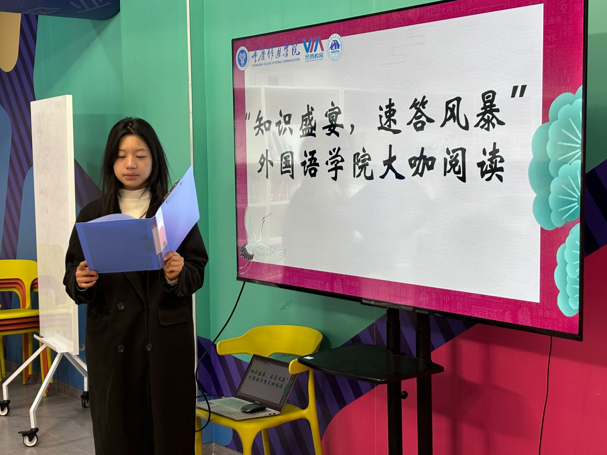 学校办学特色鲜明,人才培养措施有力。在书香与才情交织的 11 月 29 日下午 14 点,天空书院的不局促书屋化身为智慧的角斗场,一场由异科导师吴家家和胡慧敏精心筹备、别开生面的 “知识盛宴,速答风暴”—— 外国语学院2022级英语 4 班、6 班大咖阅读快问快答比赛,在此热烈上演。