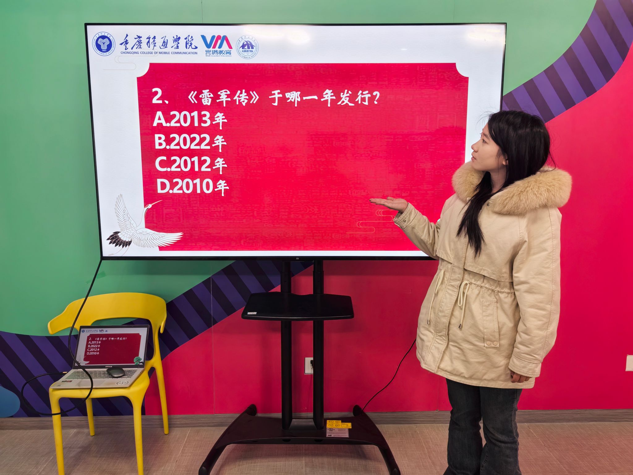 随着比赛节奏陡然加快,在吴家家和胡慧敏导师的有序组织下,知识抢答环节重磅登场,现场气氛瞬间点燃,“硝烟” 弥漫。同学们目光如炬、全神贯注,悬手于抢答器上,蓄势待发。“《雷军传》哪年发行?” 主持人话音落,抢答器鸣声四起,抢答成功的同学脱口报出准确年份,尽显研读积累之功,满堂惊叹。此仅冰山一角,题目如密集箭雨,横跨文学、历史、商业、科技多领域,考查名著情节、人物关系,深挖行业故事关键节点与战略抉择。抢答成败间,同学们分秒必争,磨砺知识运用与反应能力,思维火花绚烂绽放,赛事白热化。