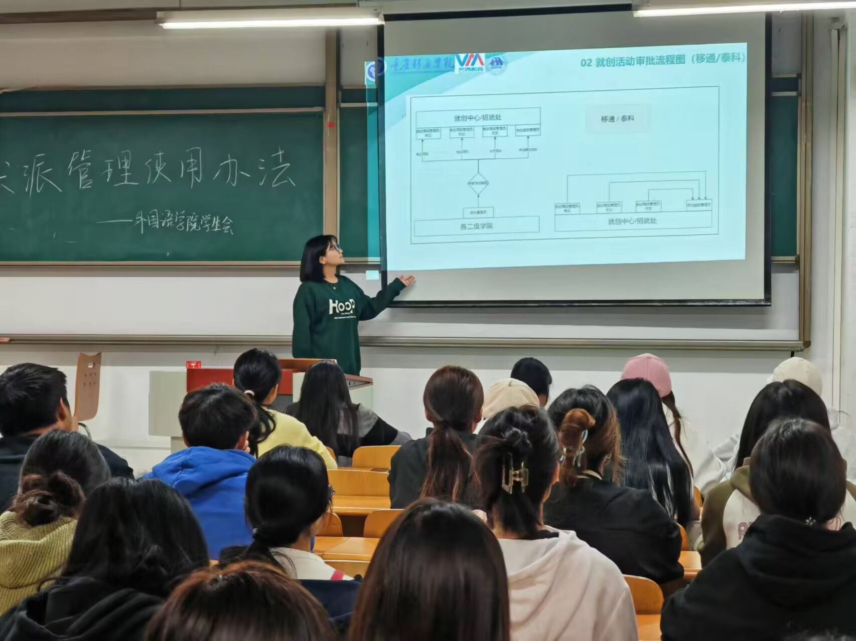 外国语学院学习部部长沈梦婕作为此次培训的主讲人,她以饱满的热情和深厚的专业素养,围绕完满教育的培养方案与核心理念,条分缕析地解读了完满教育学分的构成要素、获取途径及评价标准,为新生们勾勒出一幅清晰的成长蓝图。与此同时,学习部的部长还以亲身经历为引,深情讲述完满教育如何成为他们成长路上的灯塔,不仅照亮了综合素质提升的道路,更激发了个人潜能的无限可能,极大地激发了新生们参与完满教育活动的热情与渴望。