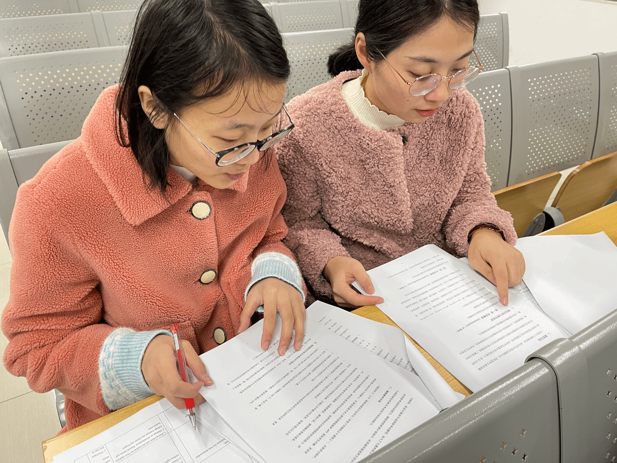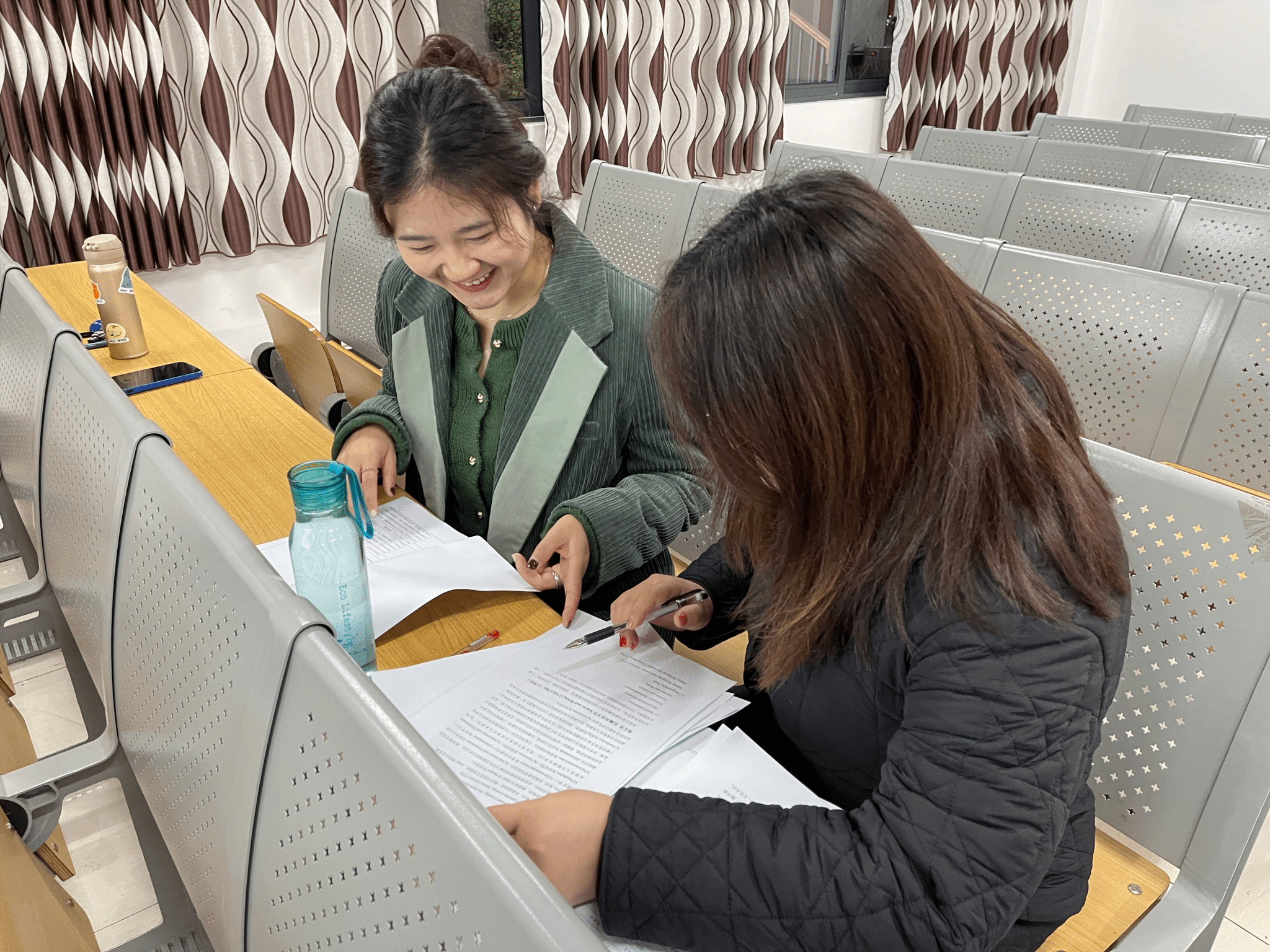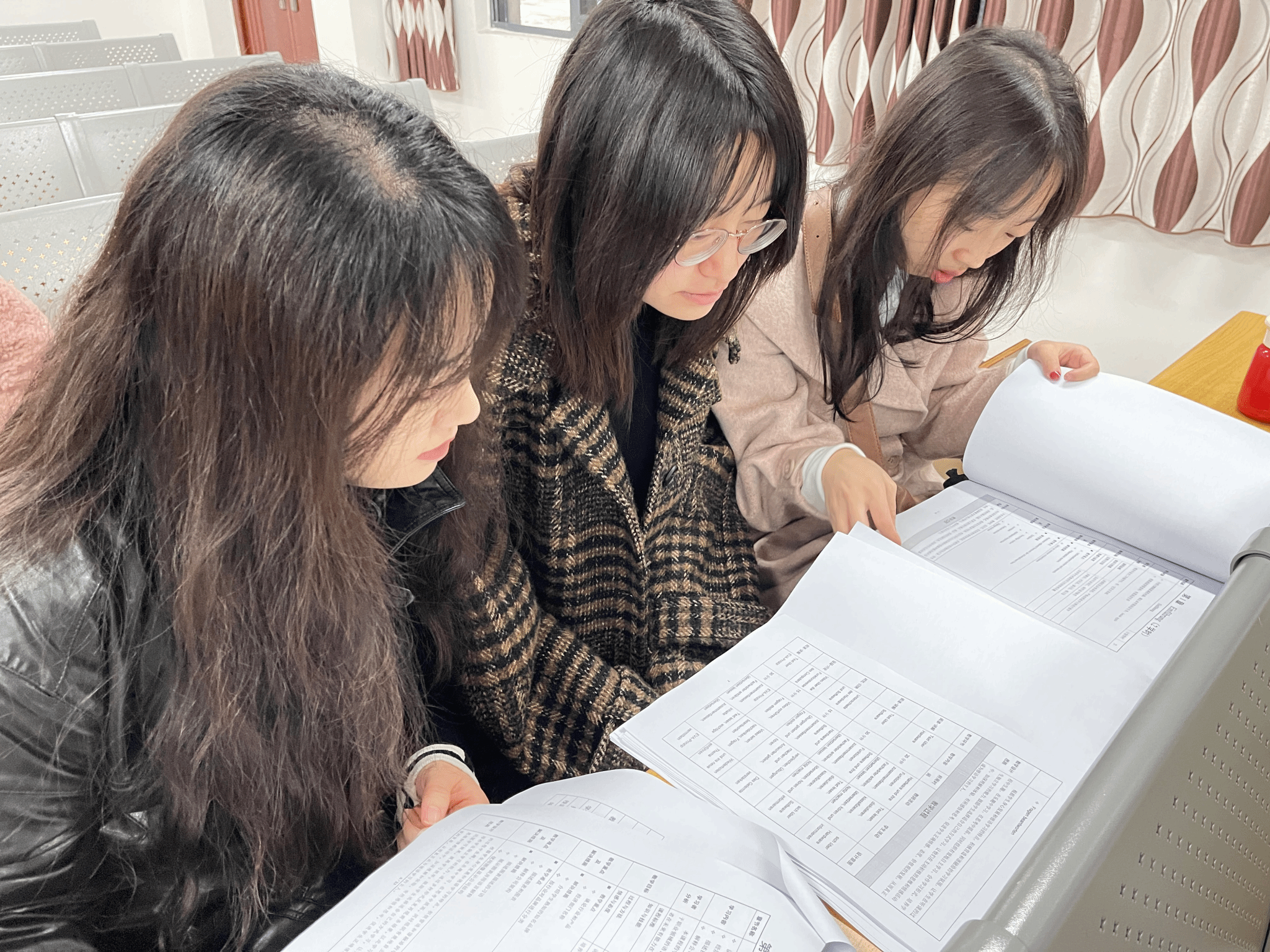 熊光源主任首先带领教研室的老师们集体研读了学校相关通知文件,强调了活动的目的,梳理了活动的流程,明确了自查要求和自查成效目标。老师们两到三人一组,积极讨论,仔细研究,以“老教师”带“新教师”的形式,全面细致地互相检查了德语专业2022-2023学年第二学期的所有课程的教学大纲、授课计划和教案材料,互相指出需要修订更正的内容,对有疑问的格式和内容进行记录、讨论,以保证各项教学资料的规范性、完整性、准确性。