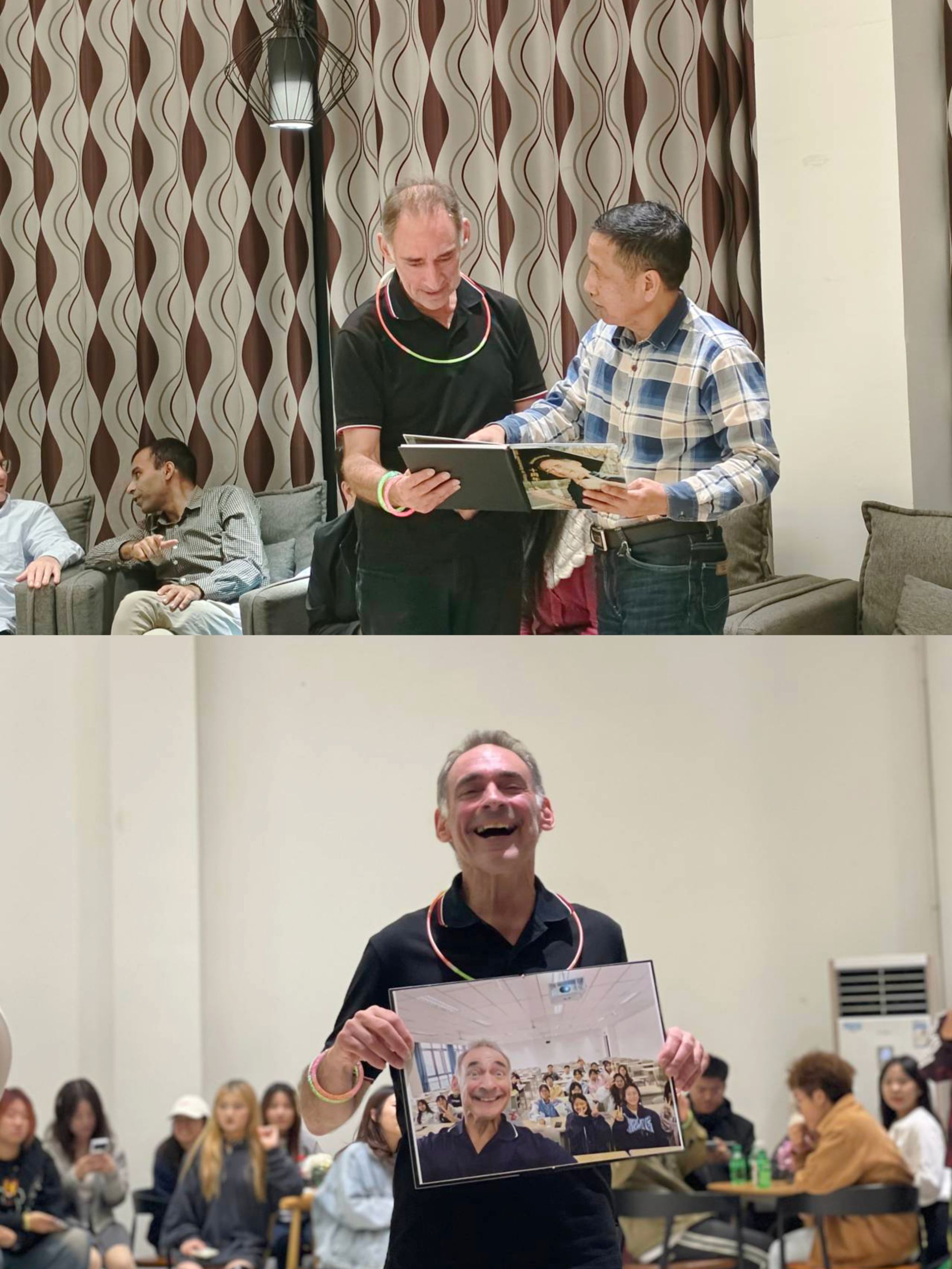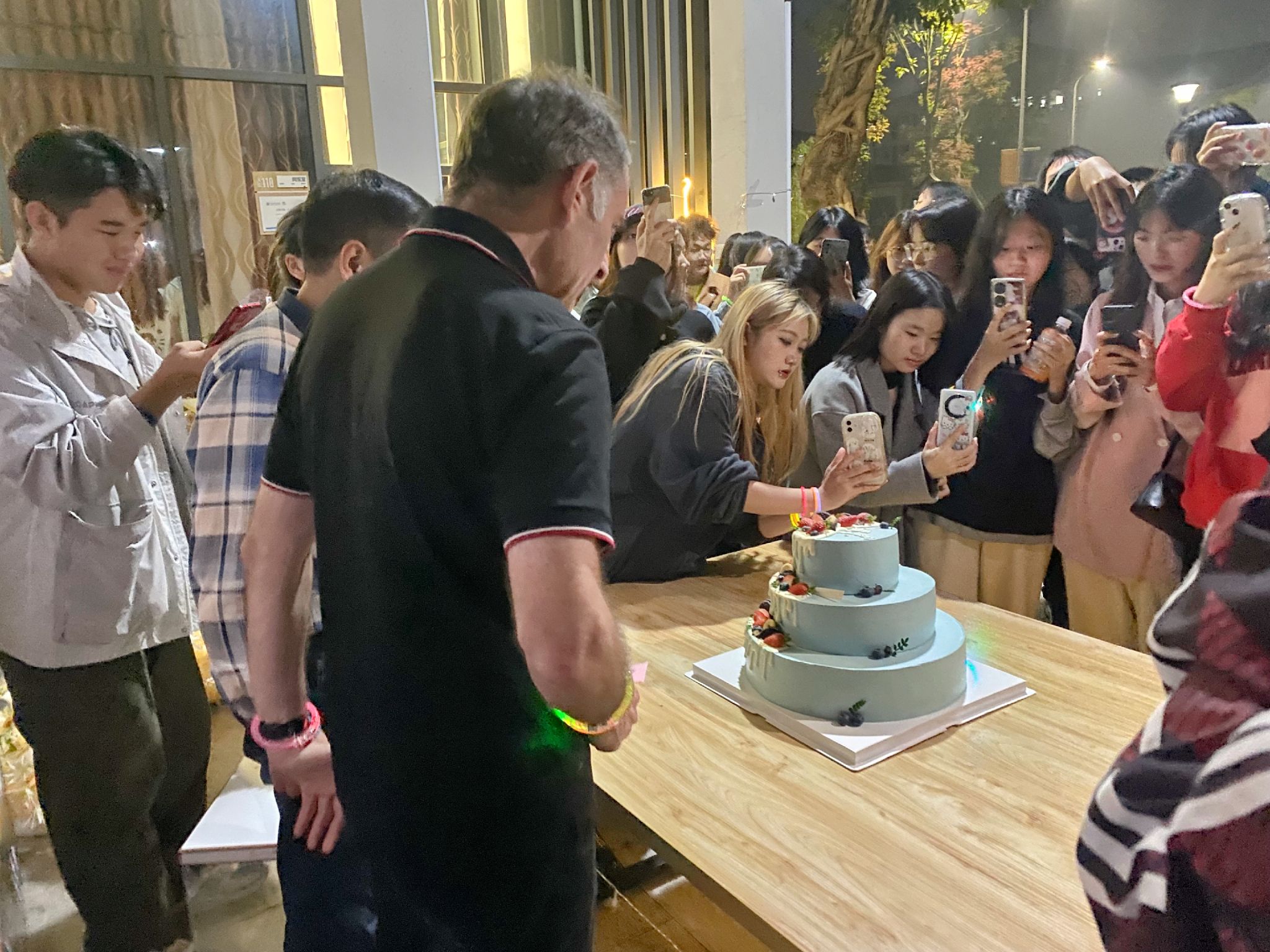 为表达对Clive离开故乡,在移通学院十余年勤恳工作的认可和感谢之情,同时弘扬移通学子尊师重道的优良传统,重庆移通学院国际交流与合作处与外国语学院特于2023年10月24日举行“浓浓尊师意,款款师生情”——Clive十周年酒会庆典活动。