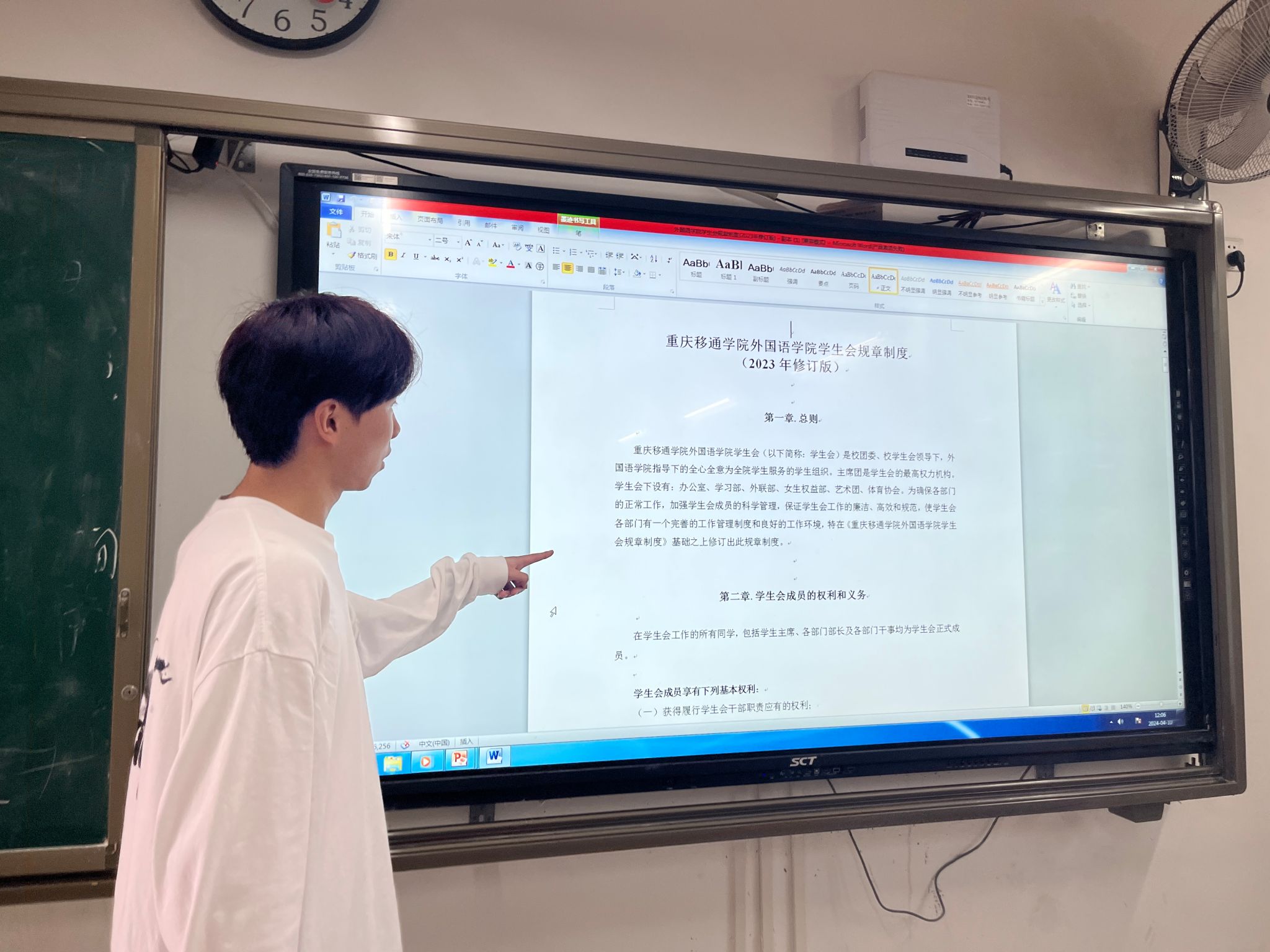 为进一步提升外国语学院各位干部对悠学派的使用技能和管理能力,帮助干部们更好地掌握悠学派APP的使用和管理,确保我校完满教育模式的正常运行,同时给同学们提供更便捷、高效的使用体验,外国语学院特于2023年10月20日在天渠104教室举办外国语学院干部悠学派使用管理规则解读培训会。