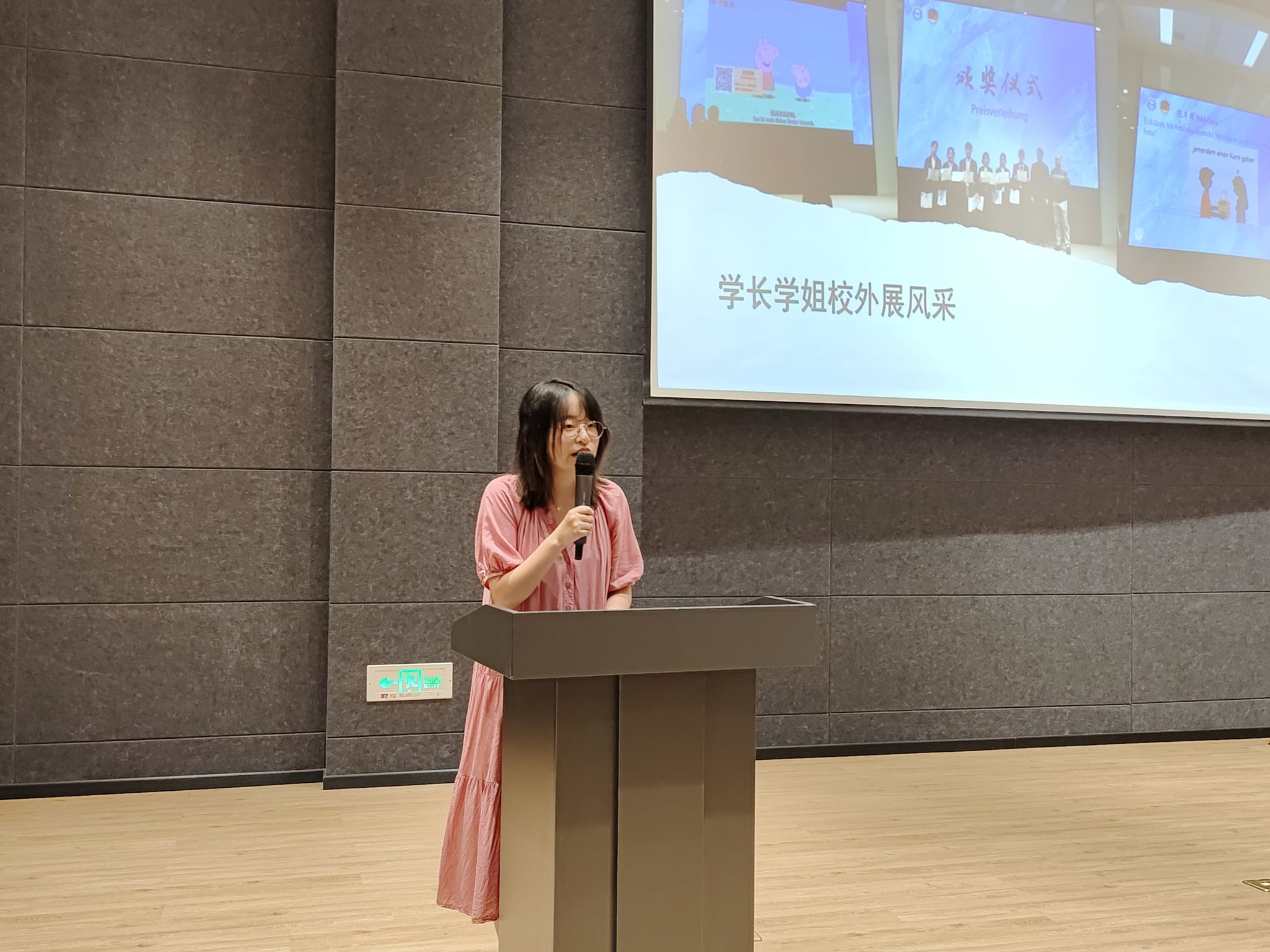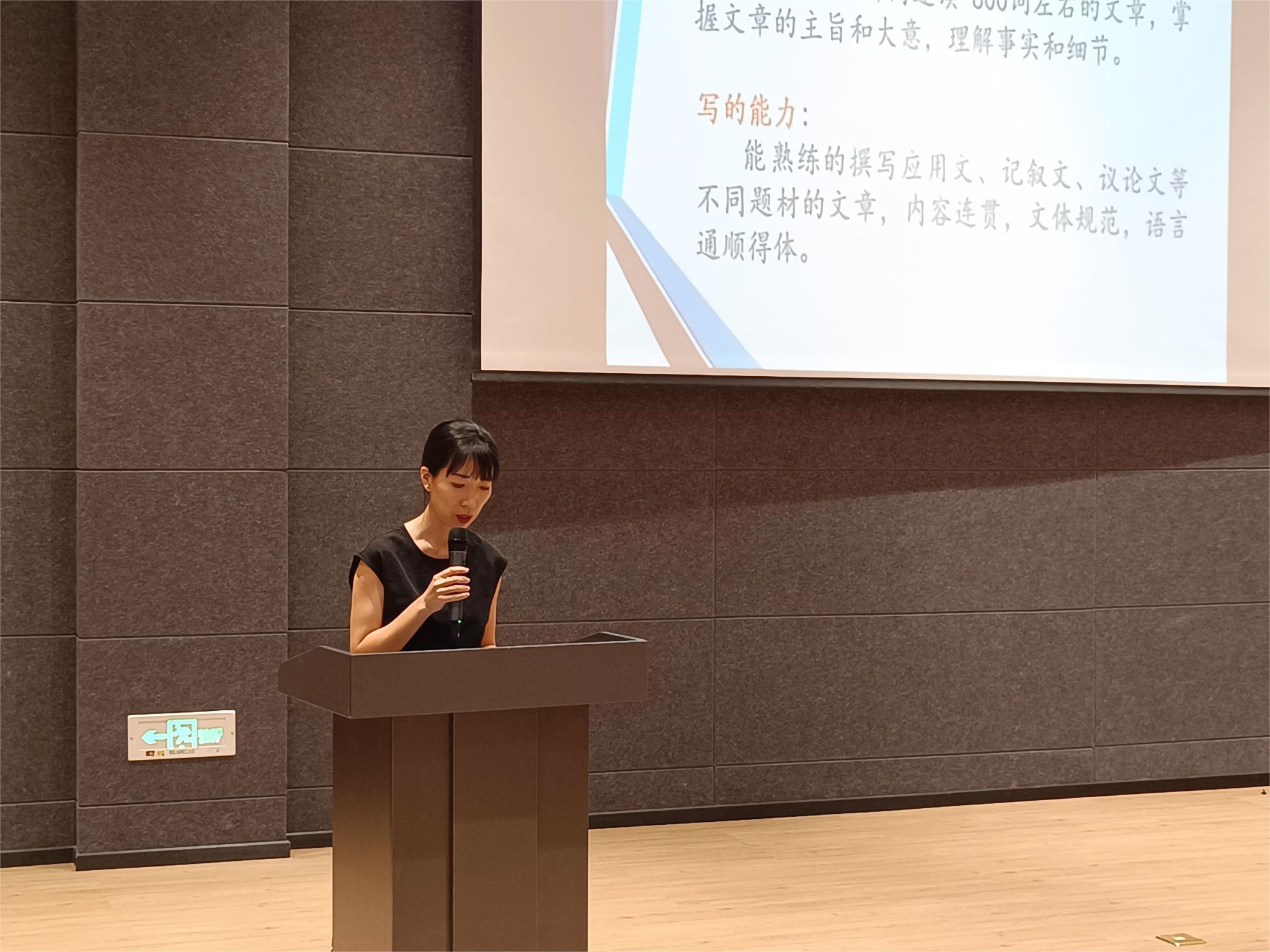 在本科新生的专业分流解析会上,专业英语教研室主任卢镜囡老师分别从专业概况、课程设置、等级考试、就业前景四个方面给想要进入英语专业学习的同学们细致讲解本专业,并十分贴切地分享了学习规划、介绍了助力学习的英文读物、学习软件等。