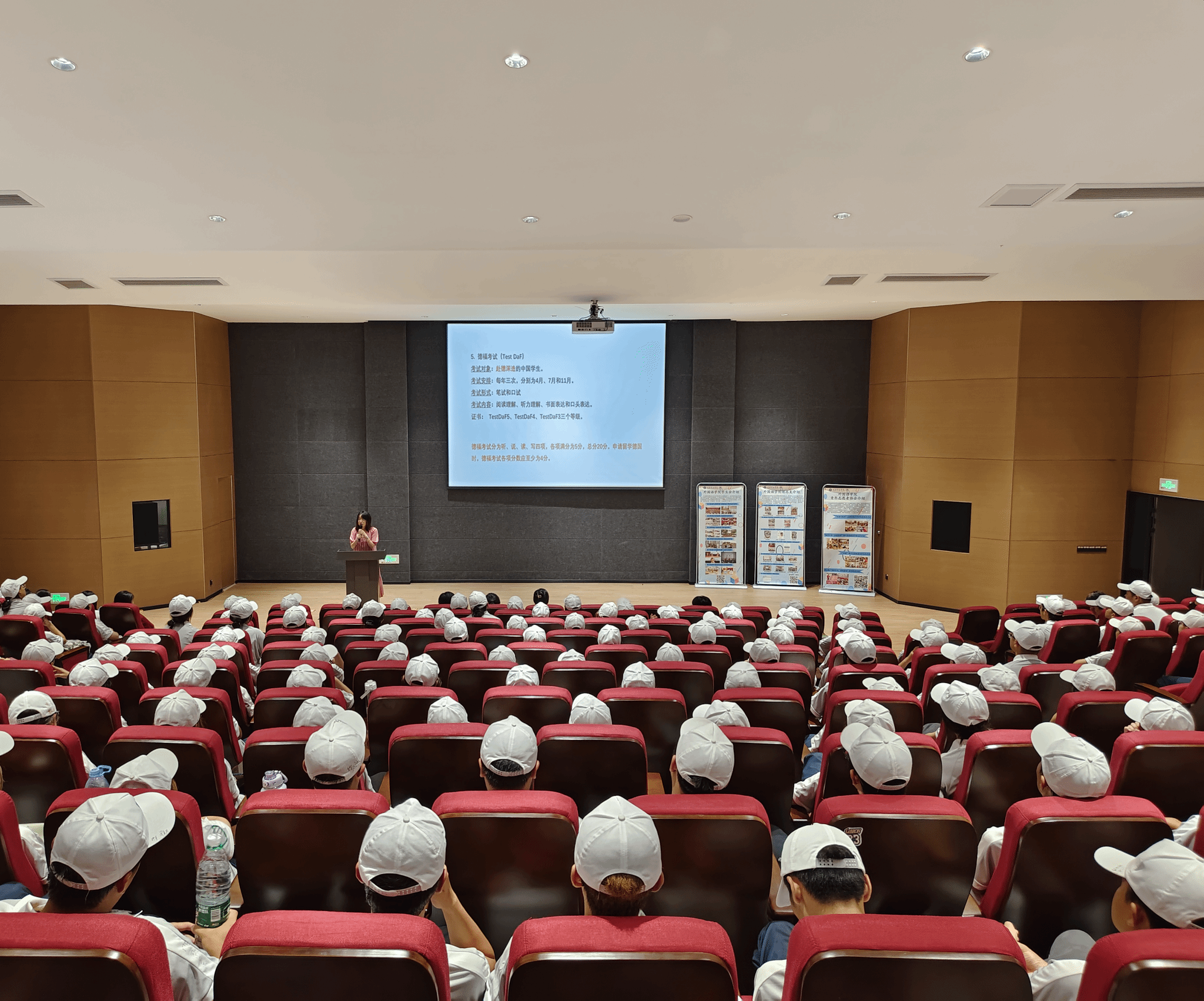 德语教研室的王晗老师也面面俱到地为新生们介绍德语专业。由问题出发,让同学们了解丰富的德国文化,进而引出德语专业的学习要求,并从听、说、写三个方面介绍德语学习方法。同时将德语课堂带到讲座,通过展示德语学习的精彩瞬间来缓解新生们即将面对新语种学习的紧张情绪。