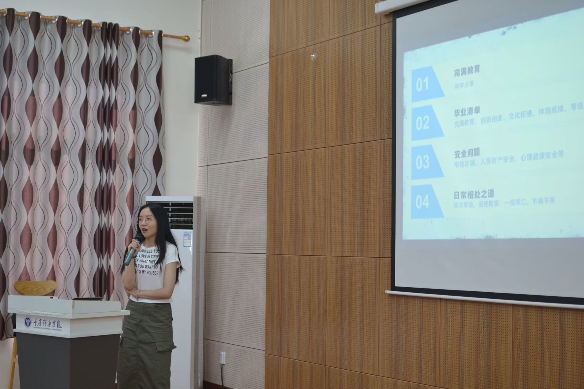 刘老师告诉同学们,完满教育是在课堂教育之外,给予同学们丰富多元的实践体验,以组织者、参与者、观摩者等多重角色走入完满教育,体验在移通的成长和改变,鼓励学生成为善思辨、明事理、懂欣赏、凝意志的人,为将来踏入社会做足准备。刘老师从毕业要求、安全、心理健康、大学生涯规划等方面进行更为具体的讲解,为同学们能更好地在学校发展奠定良好基础,也让同学们充分感受到关心和爱护。