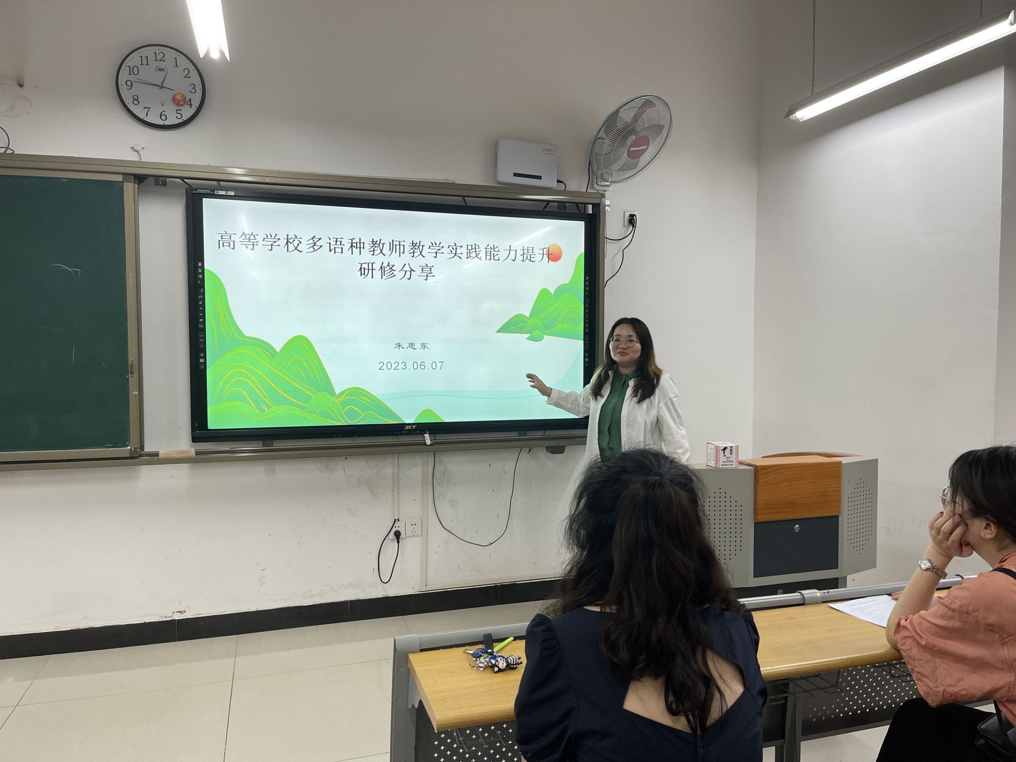 为提升当代青年德语教师的教学能力,日益增强教师自身的学习能力,2023年6月7日,外国语学院德语专业教研室召开本学期研修学习分享活动,由朱惠东老师对其参加2022年外研社高等学校多语种教师教学实践能力提升研修班的学习成果进行分享汇报。