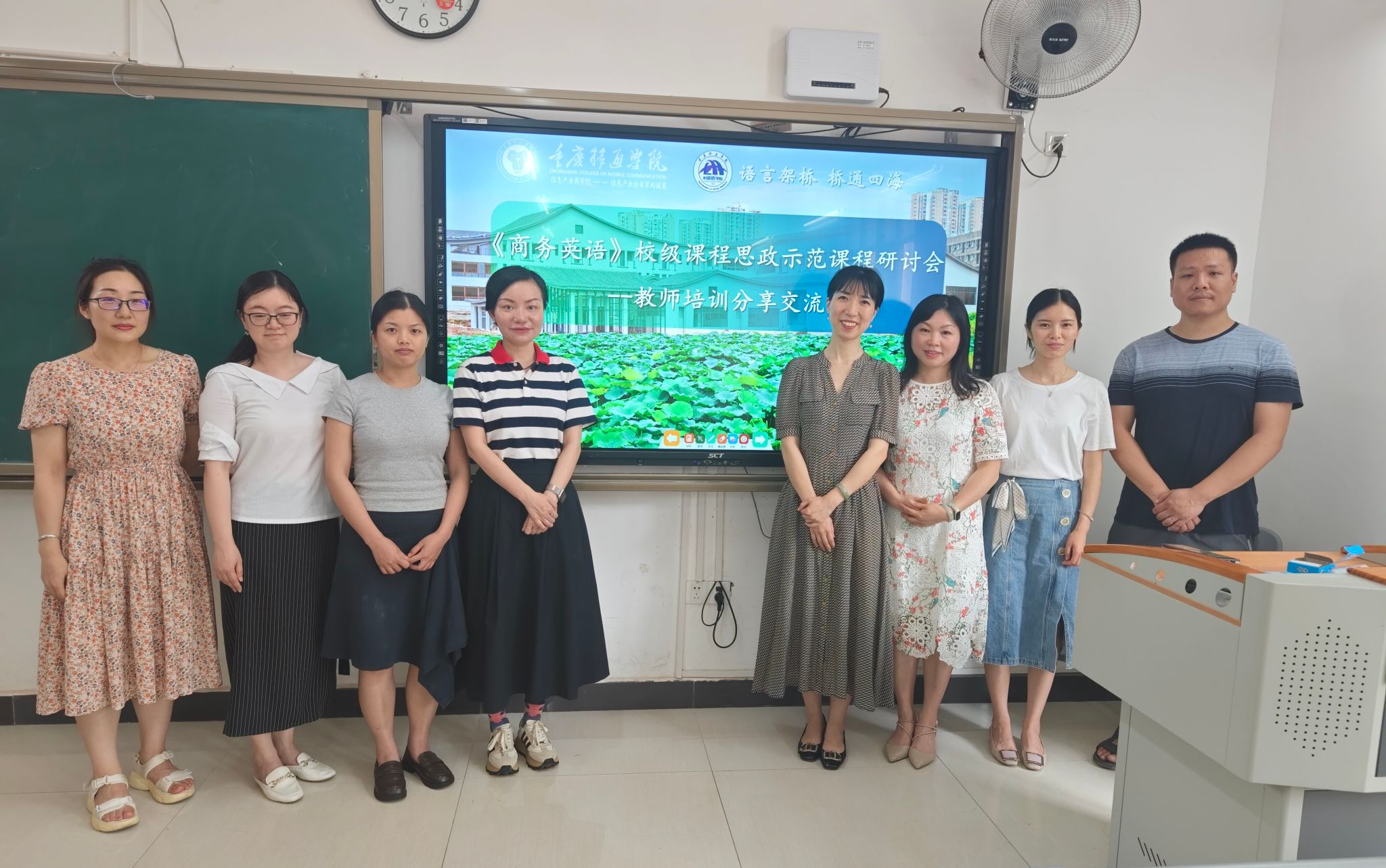 为了深入贯彻落实习近平总书记重要讲话精神,严格落实立德树人根本任务的战略举措,充分发挥课程建设“主战场”、课堂教学“主渠道”、教师队伍“主力军”作用,实现育德育人同向同行,2023年5月31日下午4:00外国语学院《商务英语》校级课程思政示范课程全体成员齐聚天渠104,开展了一次别开生面的课程思政研讨会--教师培训分享交流。