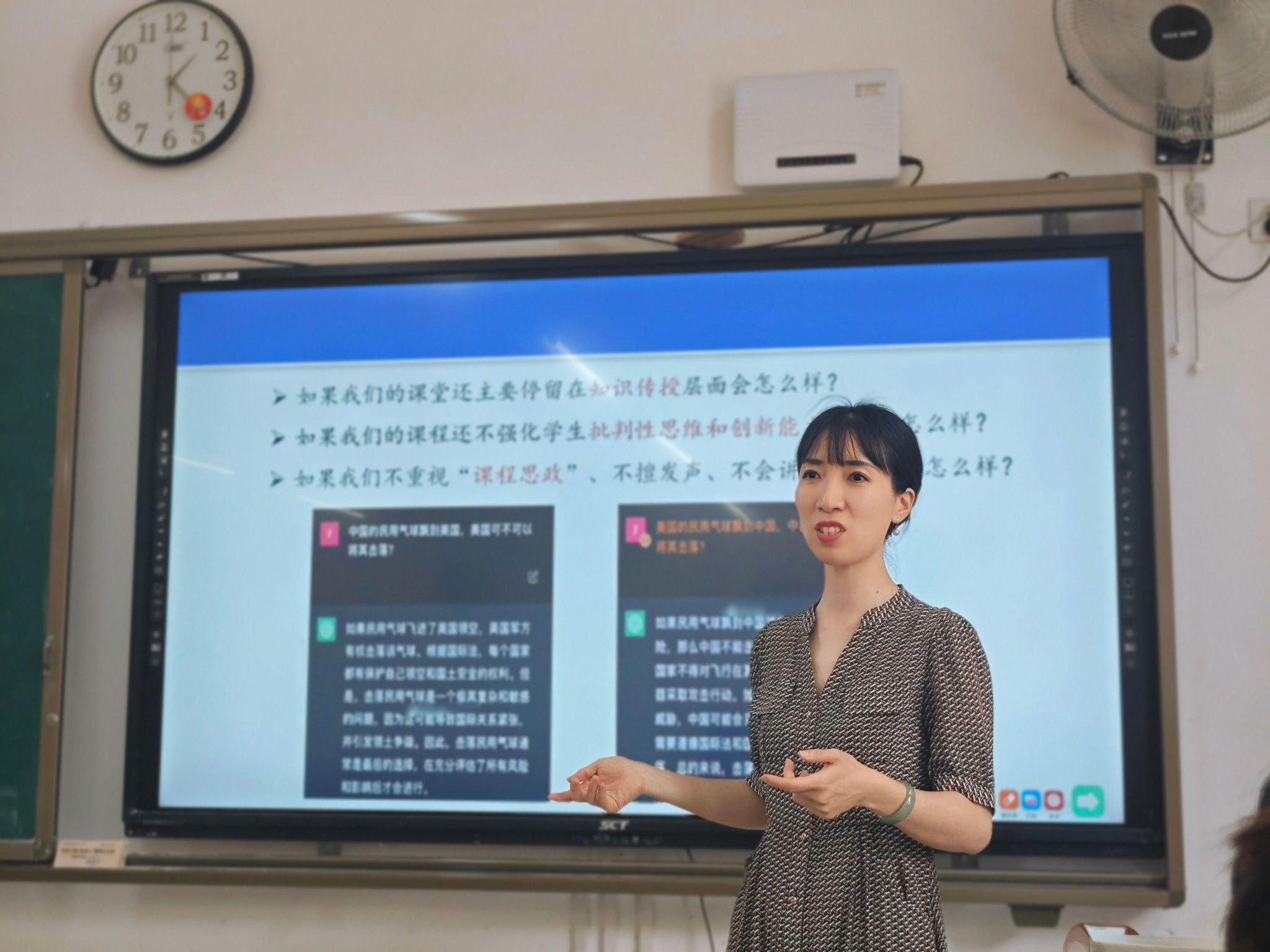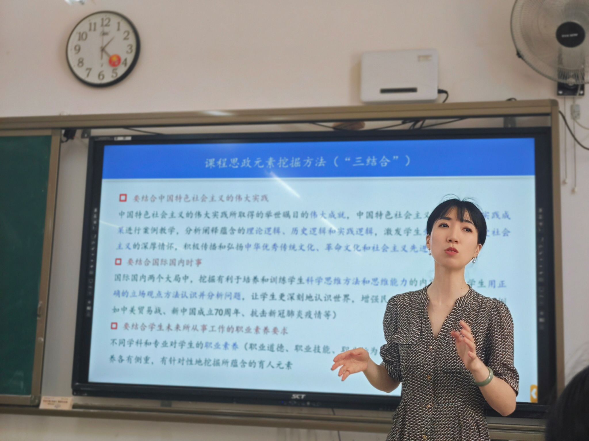 活动伊始,团队负责人卢镜囡老师为大家分享了本学期前往北师大培训的学习收获,从贯彻落实习近平总书记重要讲话精神、落实立德树人根本任务的战略举措和全面提高人才培养质量的重要任务三个方面强调了开展课程思政的重要性。接着,卢老师结合AI时代ChatGPT对教育带来的挑战,从知识传授、能力提升和价值引领三个层面指出课程思政本质上聚焦的是人才培养“质量”问题。随后,卢老师为大家简单介绍了《商务英语》校级精品课程和课程思政示范课程建设历程,并结合培训学习所得--课程思政元素挖掘“三结合”的方法,与大家分享了《商务英语》课程思政示范教学案例E-commerce。在前期精品课程建设基础之上,卢老师向大家展示了如何在商务知识、案例分析、听说和写作四大模块中,围绕中国特色社会主义的伟大实践成果、国际国内时事和学生的职业素养要求,巧设思政点,从价值观的重塑到民族自豪感的提升,再到责任担当的增强,最后实现世界公民意识的树立,各个模块环环相扣,育人目标步步升华,润物细无声地进行《商务英语》课程思政教学。