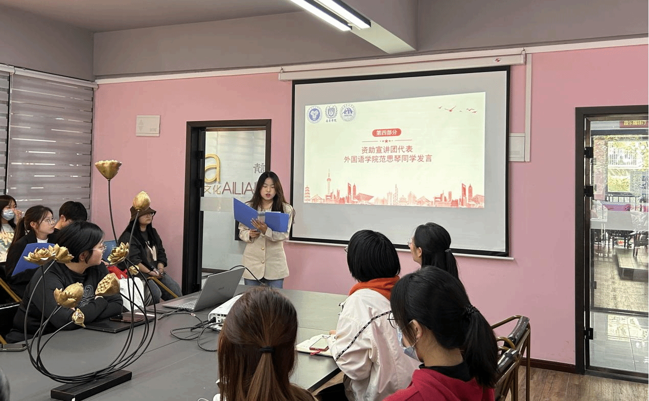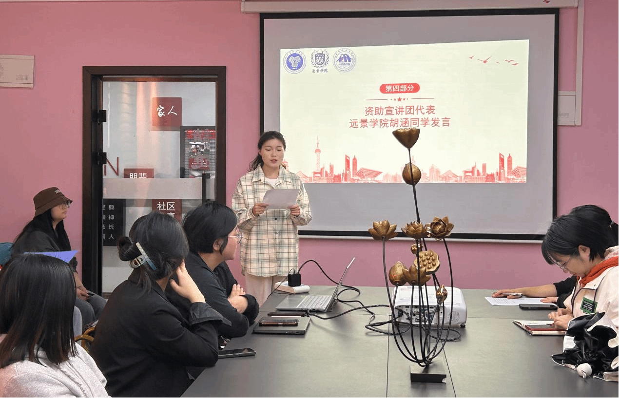外国语学院资助宣讲团代表范思琴同学发言,她提到:荣获奖学金是我平凡生活中的一束光,照亮了我前行的道路,让我在遇到困难时不放弃。是学校的资助平台富足了我的精神生活,让我在大学生活中立志成为一个非典型多面体、肆意生长,成为不被定义的有志学子,在学业和完满教育的大舞台一路升级打怪。