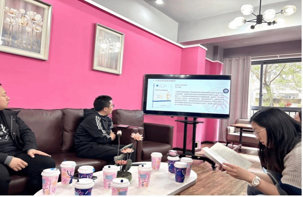 为促进德语教师的教学水平和教学质量的提高,积极探索课堂教学新策略,3月28日下午,外国语学院德语专业教研室与我校德国工程学院、戴继强德国研究院的教师代表于爱莲书院艺术交流室融合开展德语教材研讨会。
