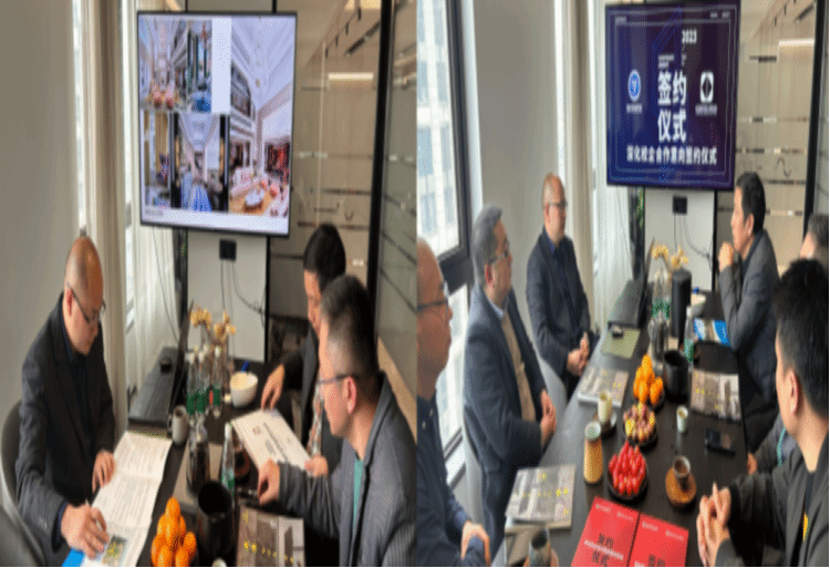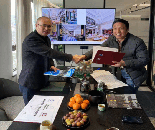 参观KD室内设计事务所时,首先我校代表与企业代表相互介绍认识,企业方带领大家参观KD设计事务所27楼办公区、21楼陈列区。简单的参观结束后,KD市内设计事务所张总在会议室接待大家,并且详细介绍公司的理念以及发展历程。根据张总和企业代表的介绍发言,吴院长提出“好奇心”、“初心”是干好一切事业的基础。与此同时,张校长说到,希望深化校企合作,也殷切希望张总有机会到校参加“名师大讲堂”,给全校师生分享设计灵感和成功经验。交流座谈会结束之后,KD张总与张校长、吴院长共同签订校企合作协议,一行人合影留念。
