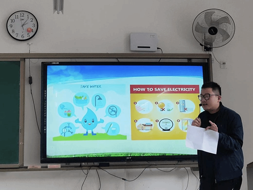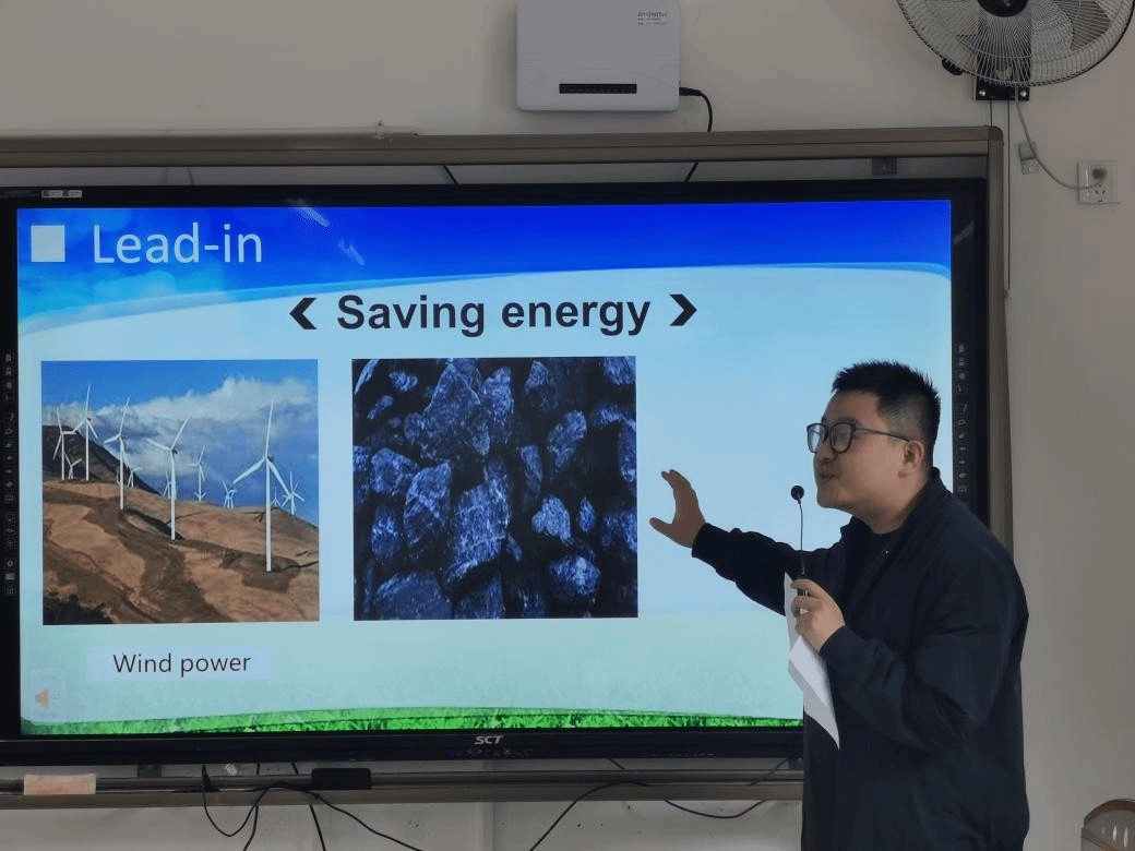 最后,曹阳阳老师带来的是英语视听说课程 Saving Energy,曹老师先以图片以及科普相关听力背景知识作为开端,在while-listening 部分让学生做填空练习,听完相关语料之后,让学生充分结合本堂课讨论的话题,展开speaking练习。曹老师做到了深度利用课堂语料,将听力和口语教学进行有机融合。在学生的role-play之后,曹老师根据学生的回答,总结高效的语言表达模板,让学生能掌握口语表达逻辑,让他们能更勇敢用英语表达。此外,曹老师在授课过程中结合节能和环保等话题,在教授语言知识,提升学生听说能力的同时,不断激发学生的环保、保护家园的意识。