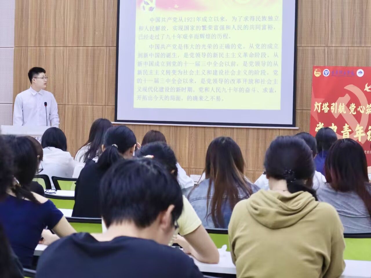 为强化青年思想教育,引领青年深刻领悟党史的磅礴力量。2025年4月16日,外国语学院学生党支部联动团总支调研部于天渠111报告厅举行 “悟党史风华,强吾辈担当——灯塔计划:党史青年说 + 学长计划联动活动”。此次活动特邀2022级英语专业优秀学长莫浪俊担任主讲人,带领大家共同探寻党史中的智慧与力量。