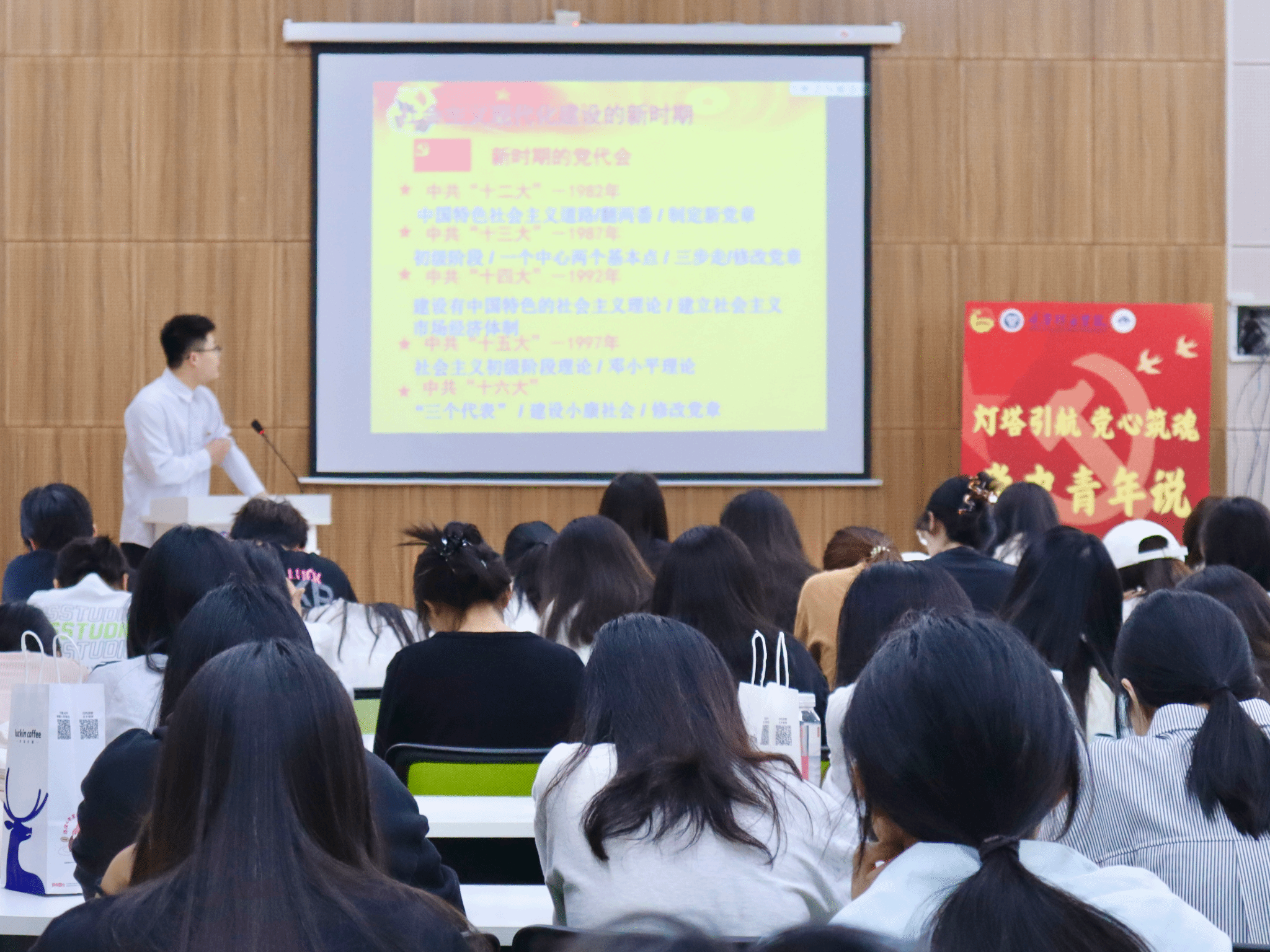 面对日本帝国主义的野蛮侵略,中国共产党以民族大义为重,倡导、促成、维护抗日民族统一战线,领导人民军队深入敌后,开展游击战争,创建抗日根据地。中国共产党在抗战中发挥中流砥柱作用,为民族解放事业作出卓越贡献。莫浪俊学长强调党领导人民为推翻国民党反动统治、建立新中国而进行的艰苦卓绝斗争。中国共产党带领人民以摧枯拉朽之势,推翻压在人民头上的 “三座大山”,迎来新中国的曙光。