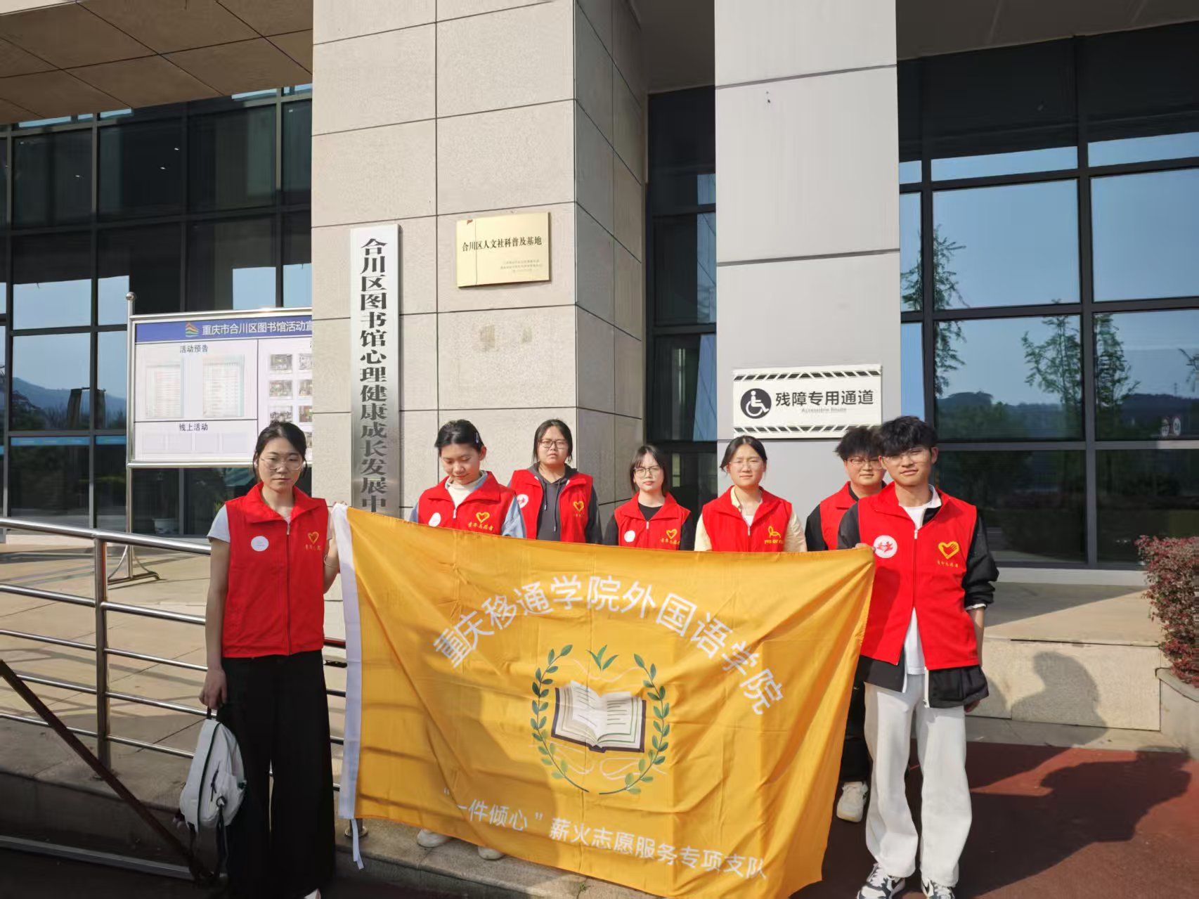 阅读和书籍在个人成长及社会发展等方面都发挥着重要作用。书籍涵盖人类各个领域的智慧结晶。阅读锻炼逻辑思维、批判性思维和创造性思维能力。它们是时代波涛中航行的思想之船,小心翼翼地把珍贵的货物运给一代又一代。为积极响应构建书香社会的号召,2025年4月12日,重庆移通学院外国语学院青年志愿者协会“一件倾心”薪火志愿服务专项支队,在合川图书馆举办以“青锐理书,书韵飞扬”为主题的志愿服务活动,旨在推广阅读,培养学生综合素质。