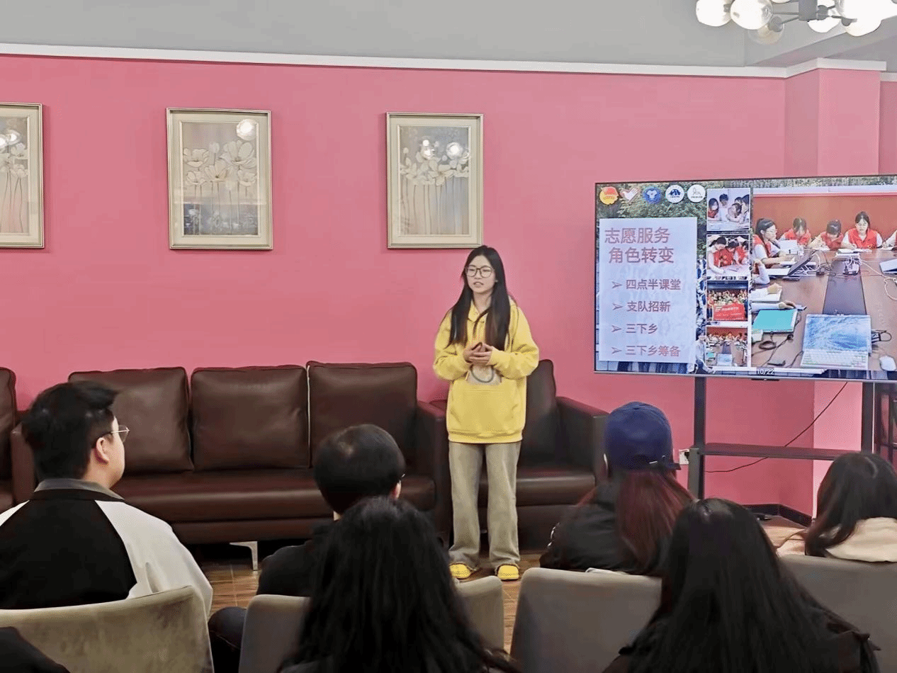3 月 12 日,外国语学院调研部于爱莲书院艺术交流室成功举办 2024 - 2025 学年 “学长计划” 第四期活动,主题为 “共话志愿,逐光耀途”,旨在弘扬志愿精神,推动学生投身公益。活动特邀外国语青年志愿者协会主席郭海燕学姐分享经验。