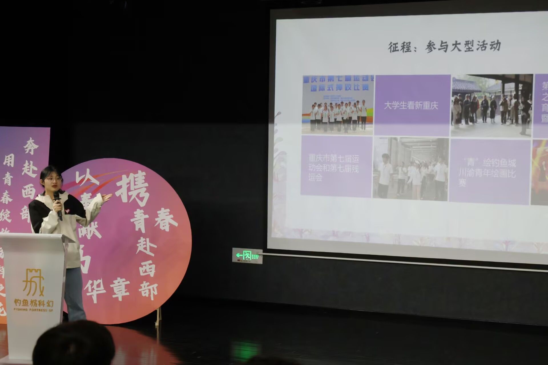 在工作过程中,蒋骊婷充分发挥专业优势,创新宣传方法,不仅让宣传内容焕然一新,还提高当地项目的知名度。蒋骊婷积极参与当地文化建设,组织各类文化活动。这些经历不仅锻炼她的能力,更让她深刻理解志愿服务的意义,收获珍贵的人生财富。蒋骊婷的分享,让在场同学真切感受到西部计划的独特魅力与深远价值,赢得阵阵掌声。