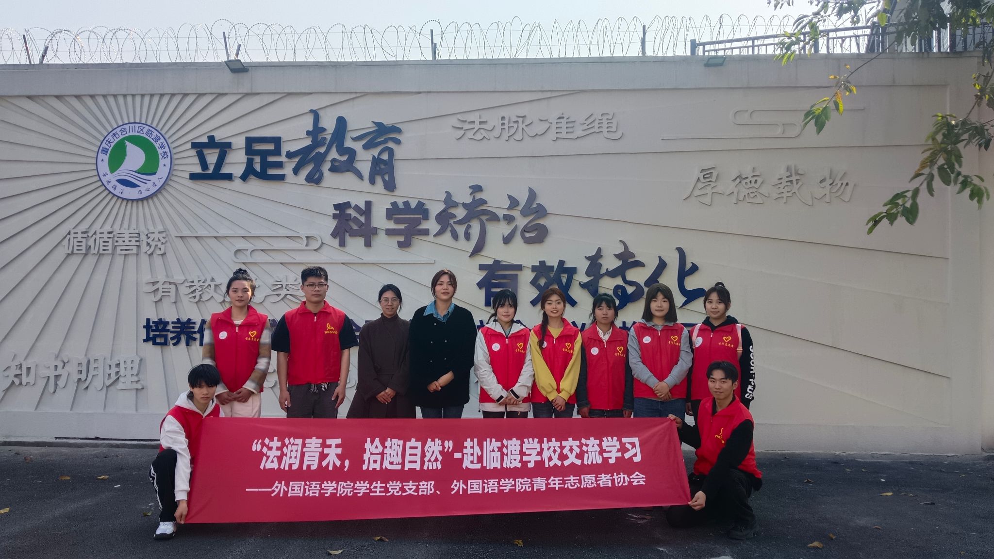 为深入贯彻落实法治教育精神,强化大学生法治观念,同时助力失足青少年重塑人生信念,2025年3月23日,重庆移通学院外国语学院学生党支部联合外国语学院青年志愿者协会前往合川临渡学校开展了本次“法润青禾,拾趣自然”普法教育暨志愿服务活动。本次活动通过法治宣讲、志愿服务与互动交流相结合的形式,与临渡学校的学员们共同开启了一段充满趣味与知识的治愈之旅。