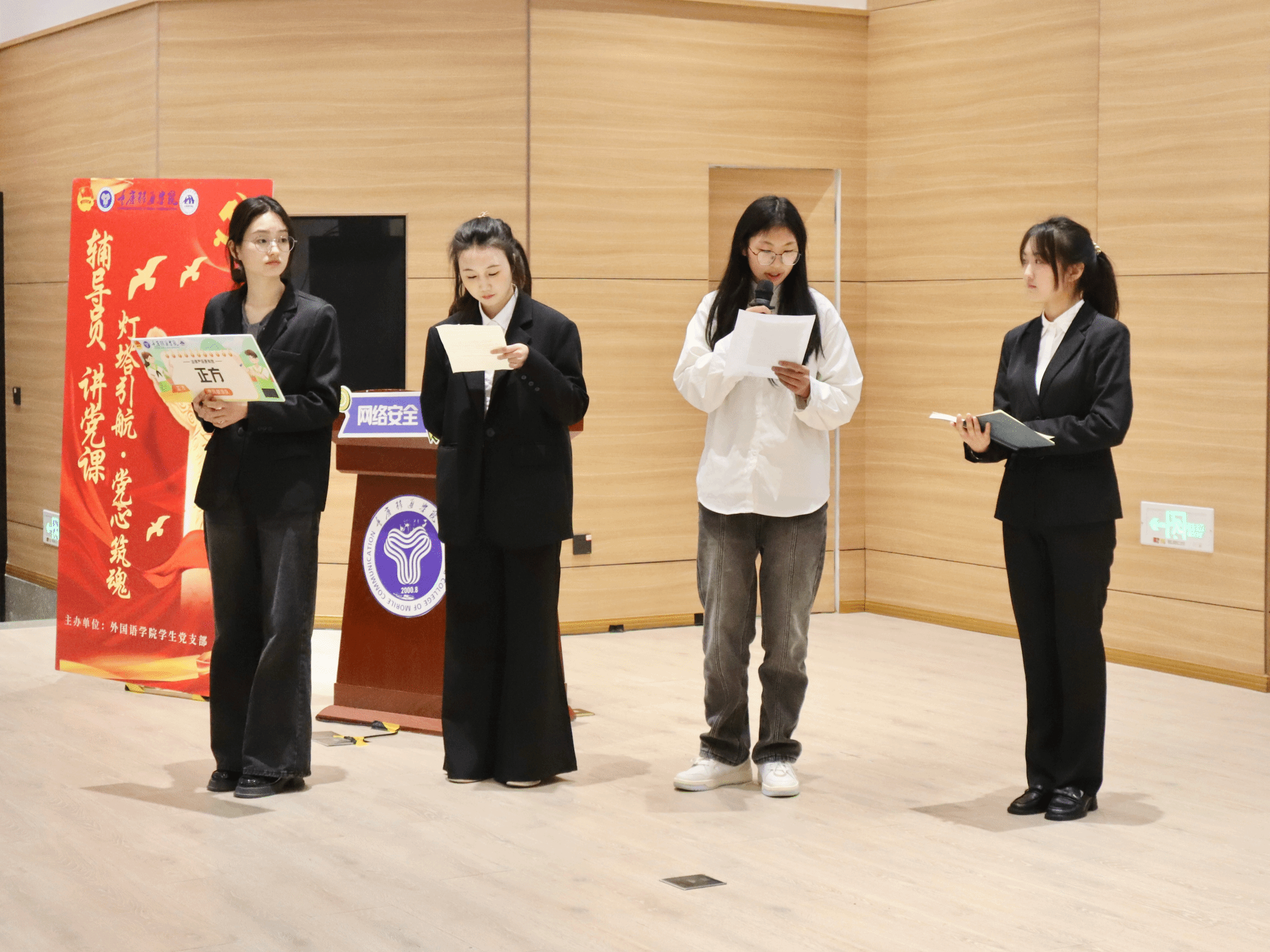 随后,外国语学院的辅导员阳果老师为大家带来了一场主题鲜明的辅导员讲党课。阳老师围绕“网络安全的重要性、网络安全面临的挑战以及青年学生在网络安全中的责任与担当”等主题,深入浅出地进行了讲解。他从国家、社会、个人三个层面阐述了网络安全的重要性,并分析了当前网络安全面临的挑战。同时,阳老师也强调了青年学生在网络安全中的责任与担当,鼓励大家要自觉遵守网络道德与法律,规范自身网络行为,树立网络安全意识,主动学习安全知识,传播网络安全理念。阳老师的讲解既有理论深度,又紧密联系实际,让在场的师生受益匪浅。