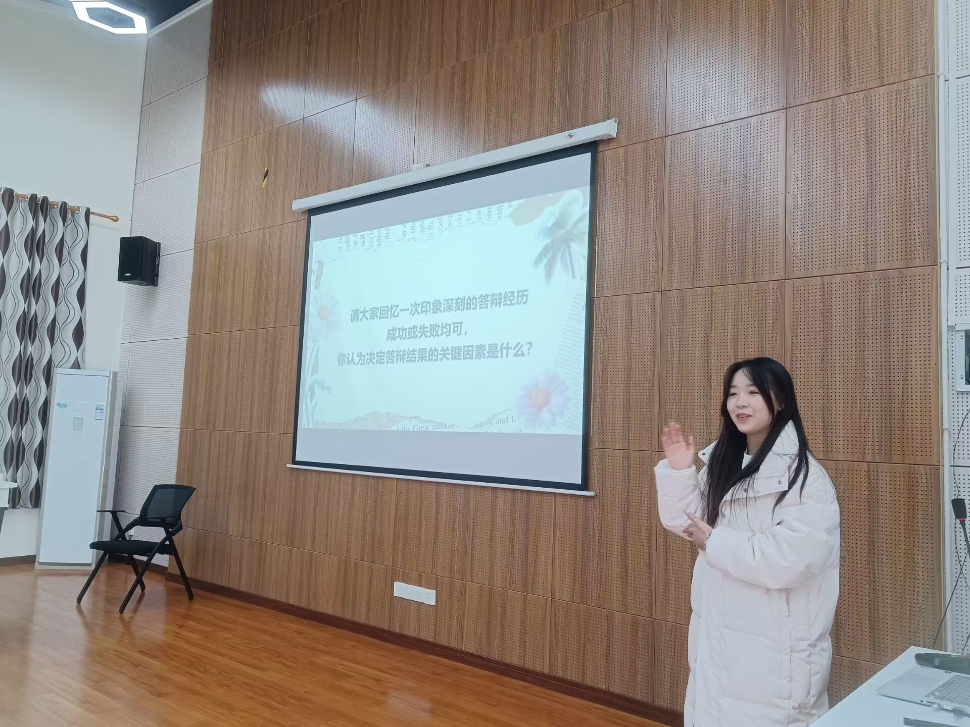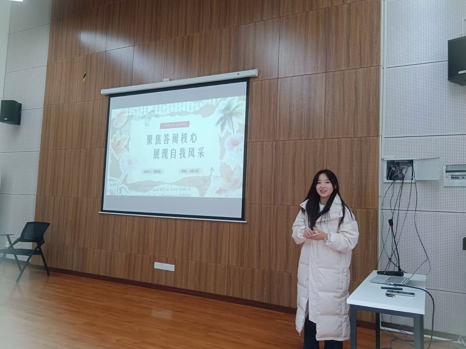 在主持人简洁的开场白之后,邱香瑜学姐正式开启本次培训。培训伊始,邱香瑜学姐以富有启发性的问题为切入点,别出心裁地从评委的独特视角出发,围绕三个重要方面,并结合生动鲜活的实例,深入且浅易地剖析答辩要点。无论是开场白的精心设计、逻辑框架的科学搭建,还是材料准备的细致入微之处、模拟演练的实用技巧,邱香瑜学姐均进行逐一详尽且专业的讲解。同时,邱香瑜学姐耐心解答干事们提出的问题,现场互动频繁且气氛热烈,参与者皆表示获益匪浅。