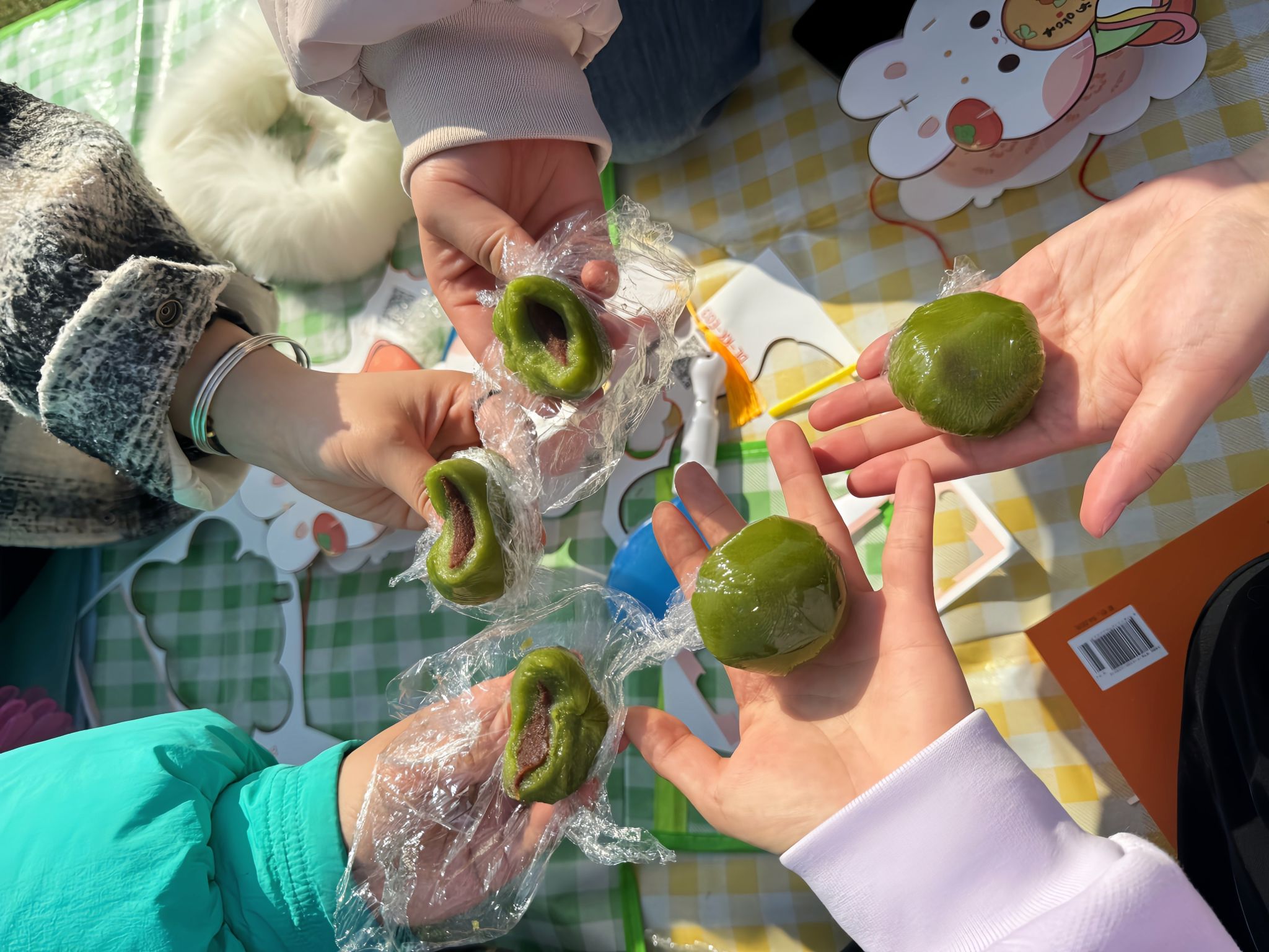 此次活动还特别设置了奖励,只要完成了灯笼制作的同学,就能在工作人员处获得传统美食青团作为奖励。大家相互协作、交流创意,遇到问题时共同探讨解决,现场制作灯笼的同学们如火如荼地进行着,小小的灯笼承载着同学们对传统文化的探索与热爱,美味的青团更添加了活力的趣味与文化韵味。