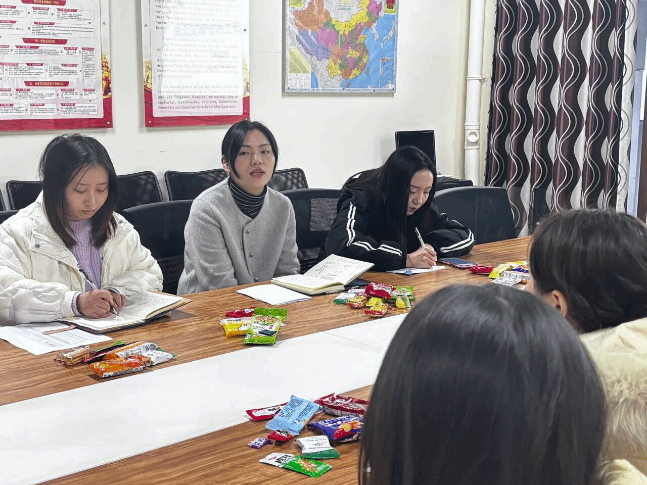 会议伊始,大四辅导员屠建丽、吕戈、刘佳昕就英、德语专业学生就业状况展开交流。当前就业形势严峻,岗位少而毕业生多,学生就业困难重重,但同学们毫不灰心,积极参训实习,积累经验、拓宽视野,在困境中探寻职业方向,志在就业浪潮中突围。部分同学积极奋战于考研、考公考编一线,部分已进入实习阶段,仅少数待业或意向未明;考研、考公及实习同学均在努力探索就业出路,英、德语专业学生考研考编热情高涨,其他同学也展现出积极探索就业之路的决心。
