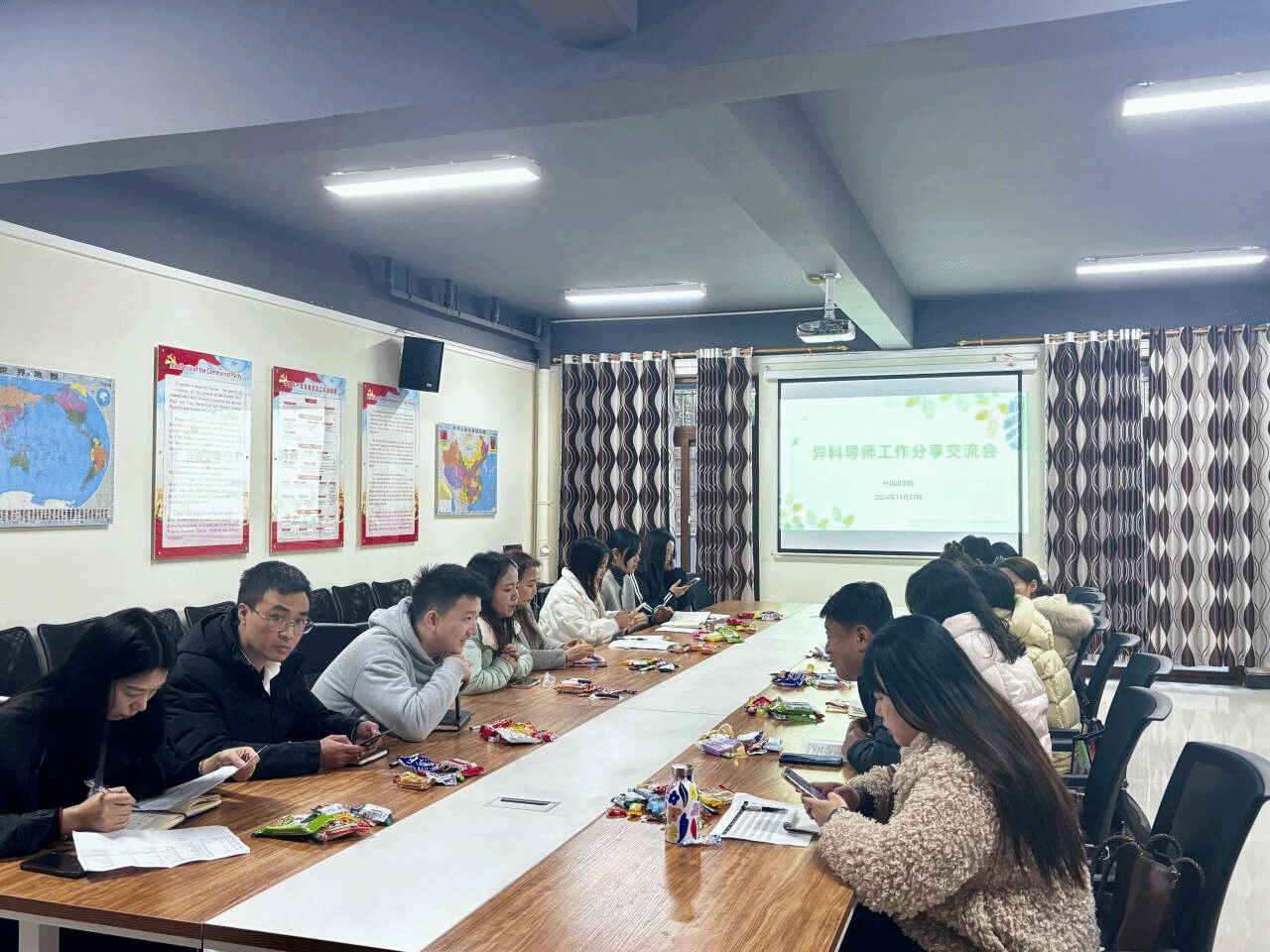在就业形势日益严峻的当下,一场聚焦大四学生就业问题的外国语学院异科导师交流分享会于2024年11月27日下午4点在荷悦112会议室开展。此次会议旨在汇聚各方智慧,为即将踏入职场的大四学子指明方向,提供切实可行的就业指导策略。参加本次交流会的有:外国语学院辅导员吕戈、兰鹰、屠建丽、刘佳昕老师以及目前担任2021级本科、2023级专升本学生的异科导师们。