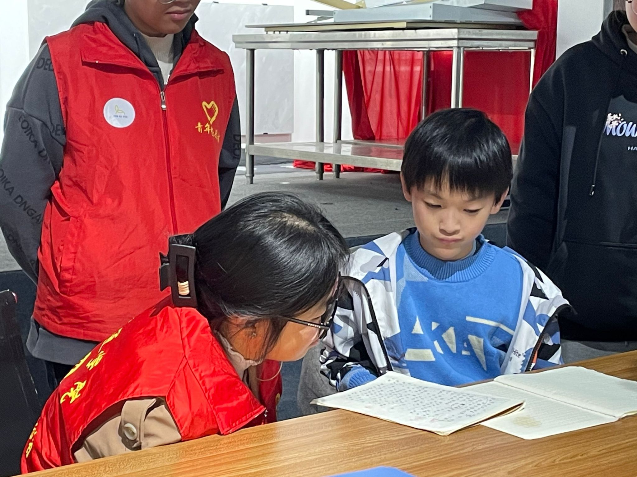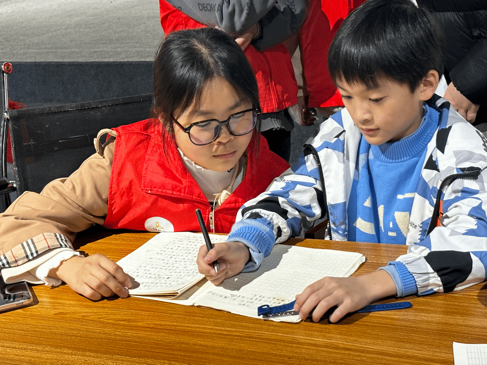 活动伊始,志愿者们迅速进入角色,耐心辅导孩子们做作业。面对孩子们在学习中遇到的难题,志愿者们运用生动形象的方式,深入浅出地讲解知识点,帮助孩子们攻克一个又一个学习难关,让孩子们在知识的海洋中畅游。志愿者们的专注与认真,如同一盏盏明灯,照亮了孩子们求知的道路。