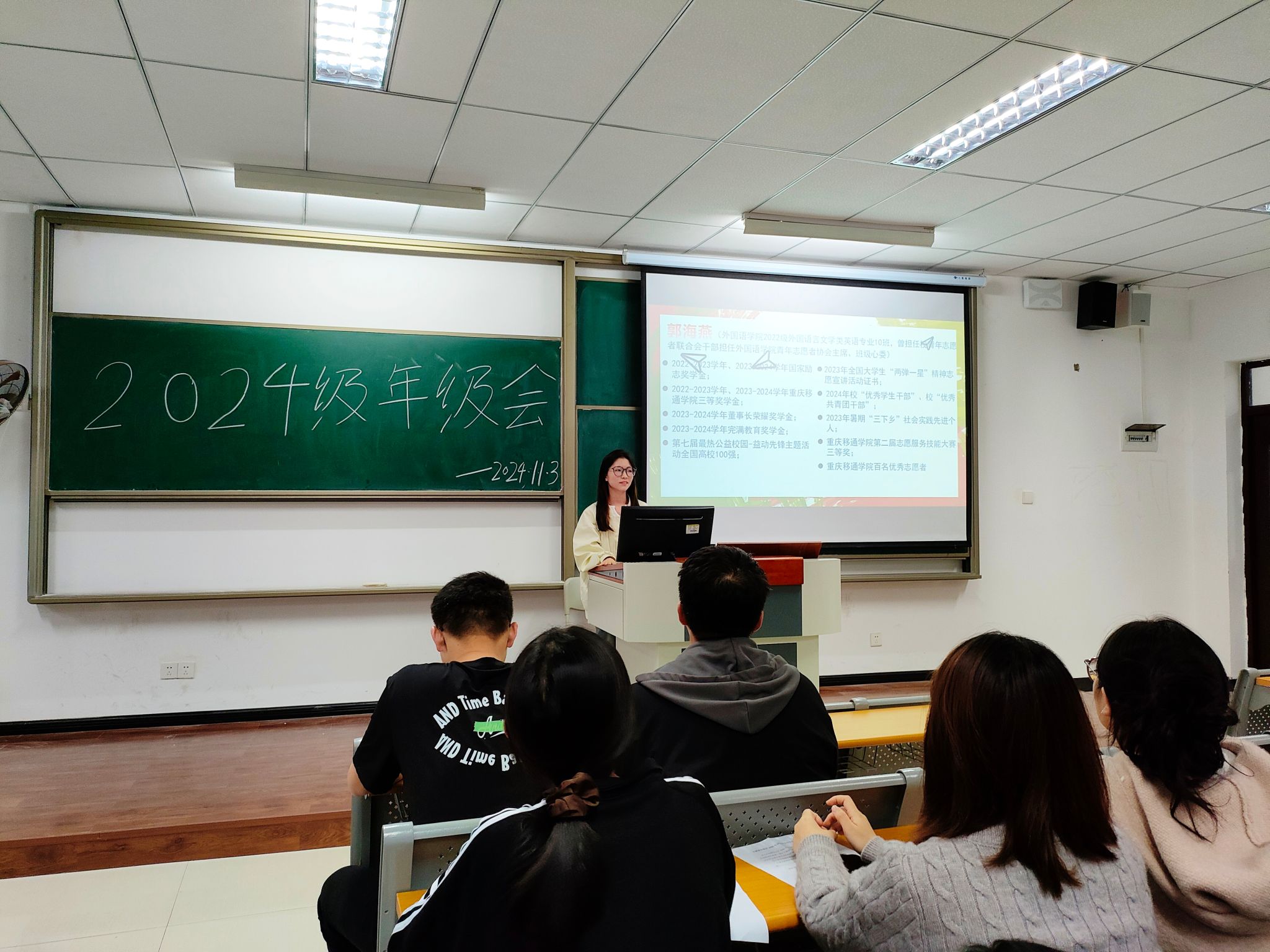 此次培训拉开序幕,由外国语学院2022级唐钦钰同学、郭海燕同学、任彦青同学通过分享自身在大学生活中的实践收获,以幽默风趣的语言引入社会实践这一话题,成功激发同学们的兴趣。紧接着2023级牌钰涵同学对校园社会实践这一话题就“重庆移通学院学生社会实践管理办法”文件中的内容进行解读,给同学们分享“移通学院社会实践报告”的模板以及细节,希望能以此为大一新生赋能。主讲人在讲解过程中,通过结合各个活动中的有显示实践,让同学们对在学校生活中的社会实践有更清晰的认识。
