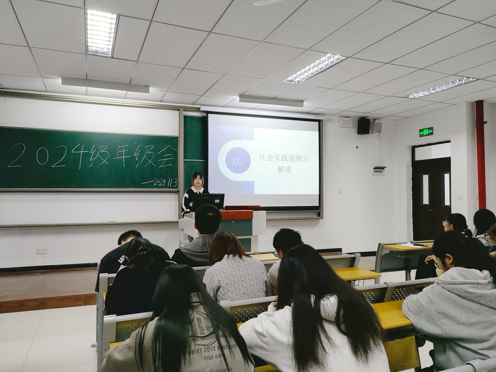 为确保活动的顺利进行,此次活动主办方精心筹备,制定详实的活动方案,成立专门的筹备组,负责活动的组织协调、课程讲解等工作。同时,通过线上线下多渠道宣传,广泛动员大一新生积极参与,为活动的成功举办提供有力保障。活动伊始,大家有序进场,依次落座,主持人用简短利落的开场白为大家介绍此次活动目的。首先主持人从三个方面展开讲述此次主题的含义:为什么需要社会实践、如何去进行社会实践、社会实践的意义。