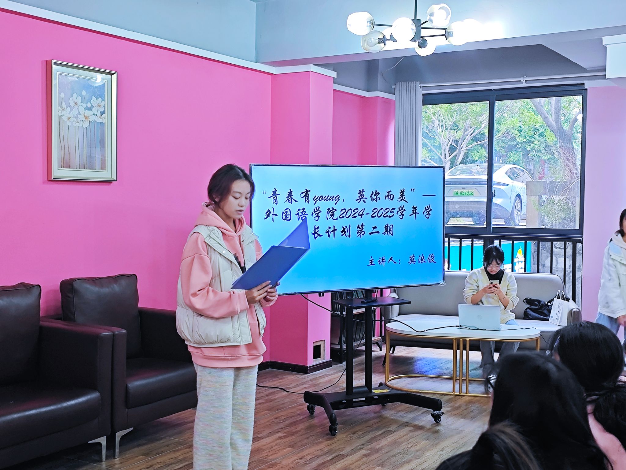 英语,宛如一扇通向世界之窗,能拓展国际视野,开启全新人生旅程。2024 年 11 月 6 日,外国语学院 “青春有 young,英你而美”——2024 - 2025 学年学长计划第二期于爱莲书院艺术交流室圆满落幕。此次活动仿若一座知识的桥梁,搭建起学子与高效英语学习方法之间的通路,意义非凡。