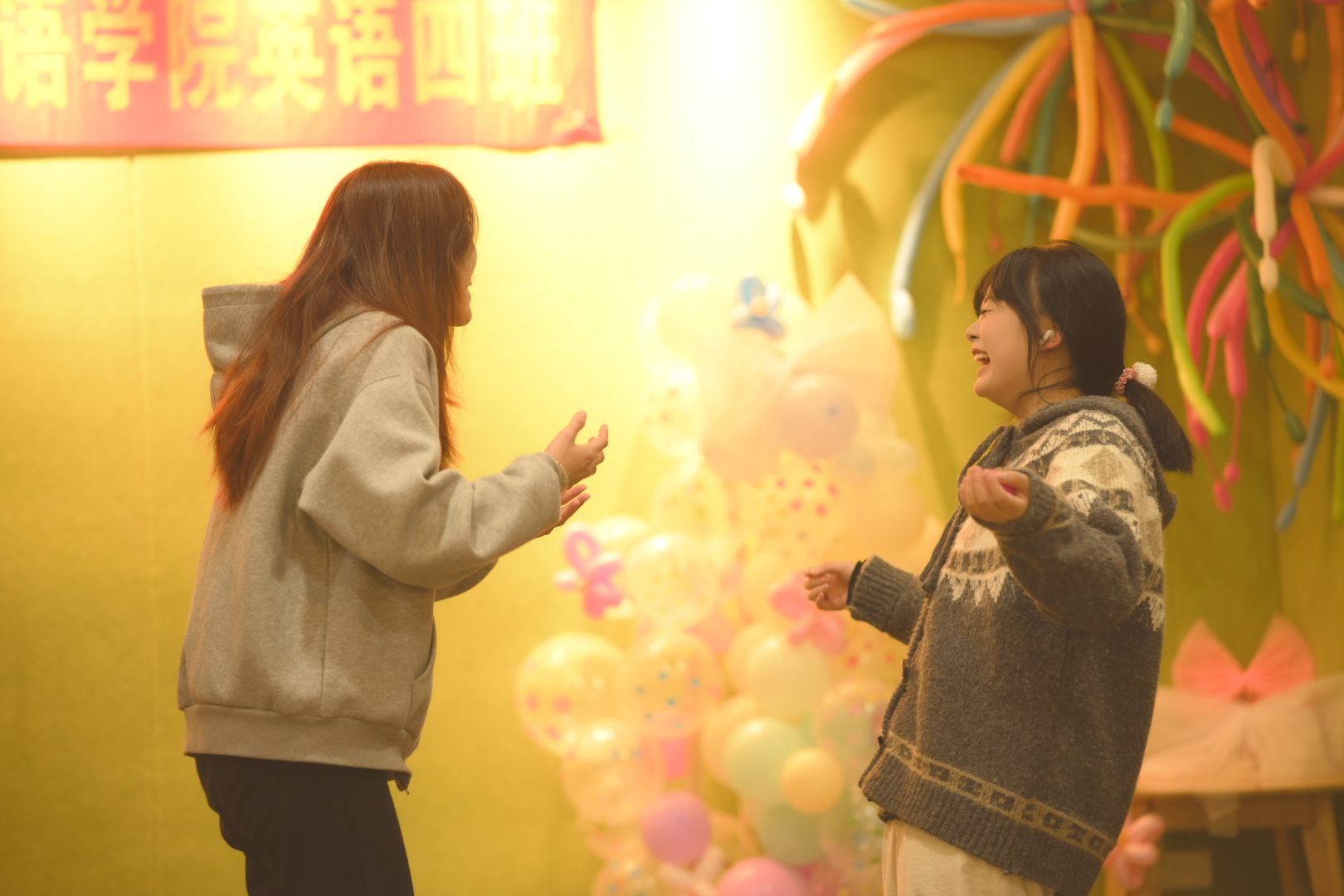 接着,游戏“踩气球”让同学们在激烈竞争中释放了学习与生活的压力,现场气氛热烈非凡。此后,歌曲《至少还有你》以温暖的旋律触动了在场每个人的心弦。