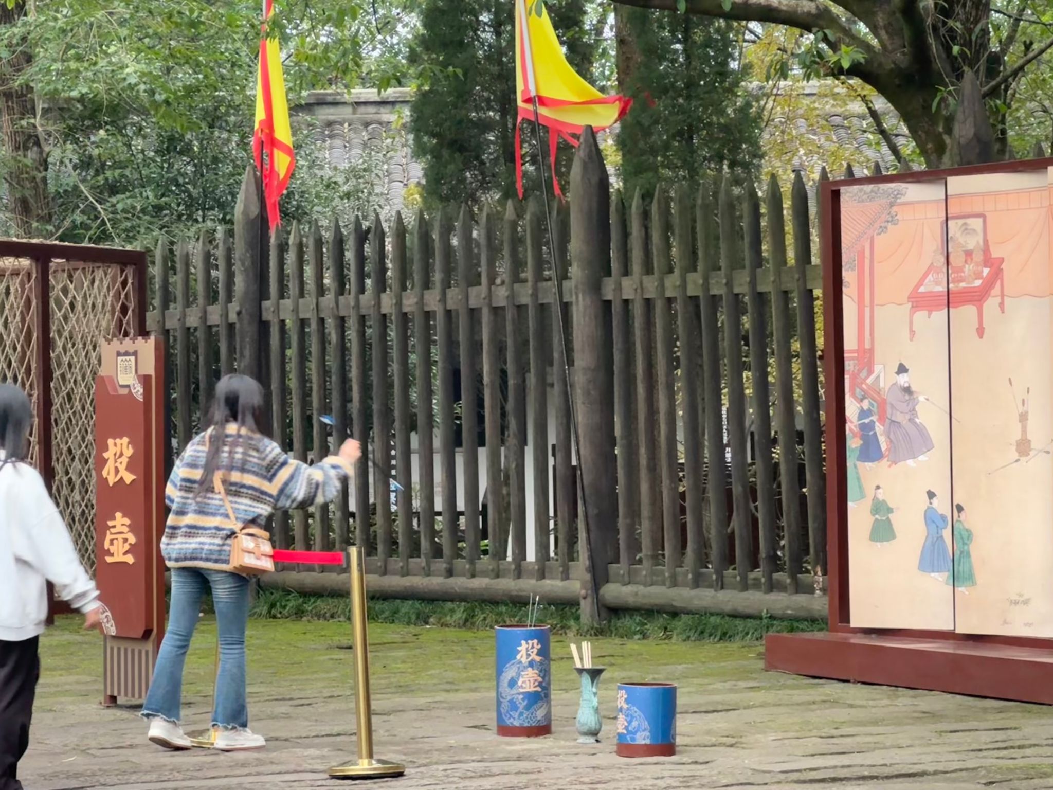 随后,讲解员带领同学们进行影音鉴赏,组织观看钓鱼城历史文化博物馆纪录片,并开展观影心得交流会,分享心得的同学有幸获得小礼物。二是学习研讨,通过对所参观的四处地方的相关历史知识进行设置有奖竞答,同学们积极参与,现场气氛热烈。登上护国门,俯瞰整个钓鱼城,感受历史的壮丽与沧桑。活动的高潮在古校场遗址举行。在这里,同学们共同参与两项有趣的活动游戏“你说我猜成语”和“投壶射箭”,同学们在游戏中锻炼到团队协作能力,欢声笑语中,同学们的距离不断拉近,心也贴得更近。