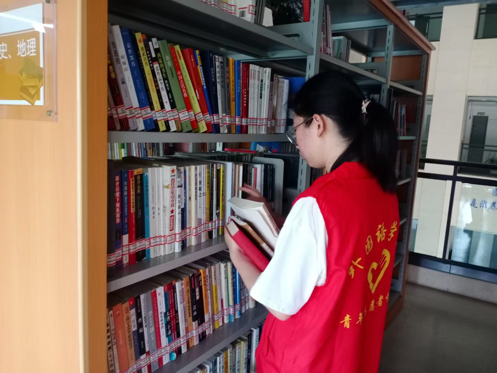 此次志愿活动中,志愿者们精心整理图书,按照编号仔细归位,确保书架整齐有序,为读者提供良好的阅读环境。同时,志愿者们还积极协助读者借阅,耐心解答关于借阅流程、书籍位置等疑问,不仅有效提升借阅效率,还极大改善读者们的借阅体验。