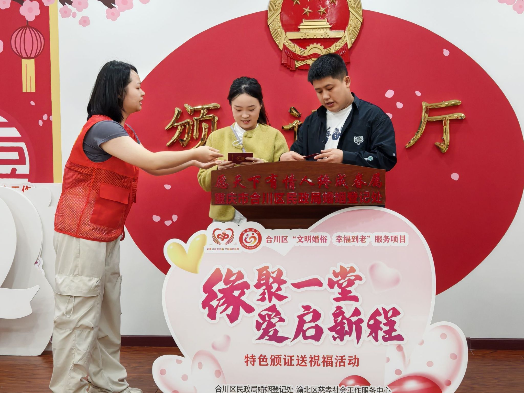 以爱为舟,汇聚温情缔新篇;志愿之行,凝结婚恋显真情。在这段充满爱意的旅程中,“渝爱”婚恋志愿服务专项支队以实际行动诠释爱的真谛,不但为新人的婚姻增添浓墨重彩的一笔,也让爱的力量在社会中传递。愿这份爱心如星火燎原之势,持续照亮更多人的婚恋之路,让爱永远璀璨夺目,温暖人间。